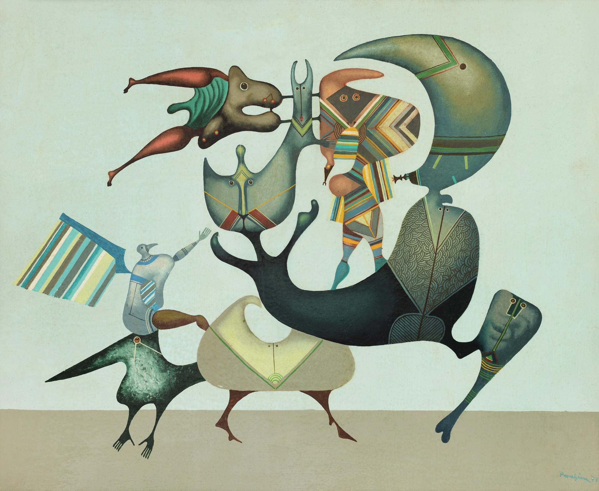 signed and dated lower right, in green, "Perahim, (19)77"