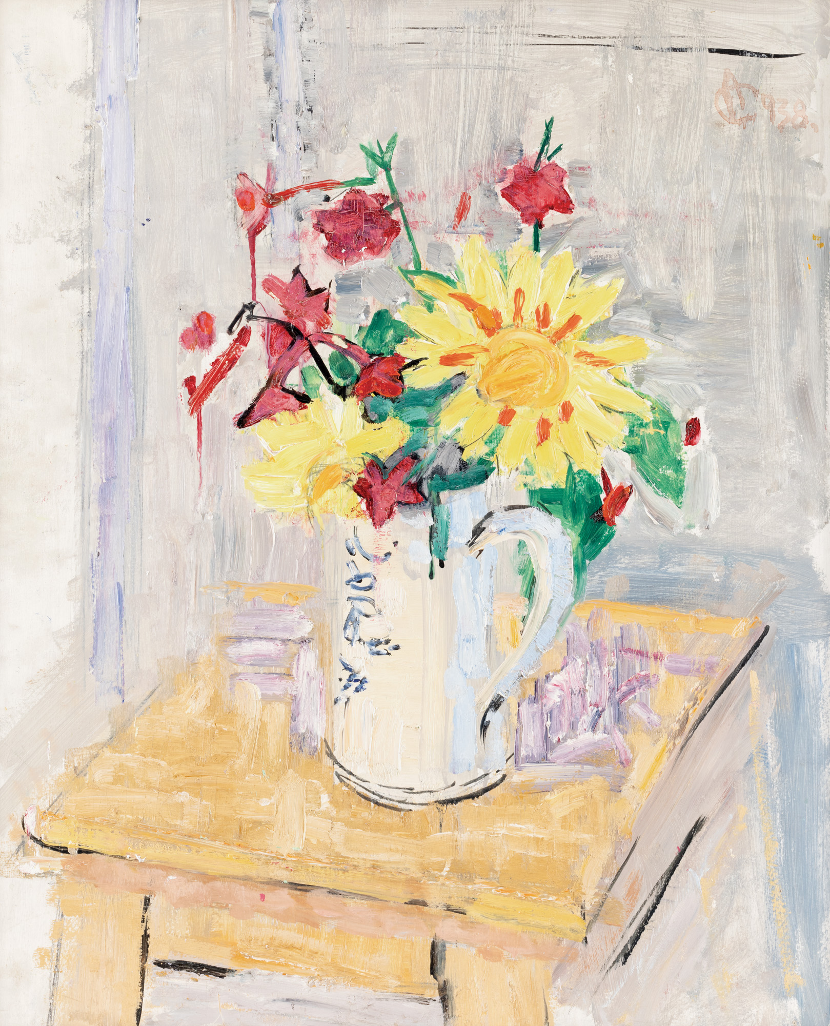 Ciucurencu will excel especially in the realization of still lifes. In this pictorial genre, the artist will remain known due to his preference for warm and intense tones, his skill of melodious organization of the composition and the ability to interpret in lyrical rhythms the chromatic adjacencies. Ciucurencu admires the flowers painted by his forerunners, especially those of Luchian. He finds inspiration in the artist's work, but his flowers remain anchored in a representation where the emphasis is mostly on the chromatic, while the form acquires secondary connotations. The present artwork is characteristic of the first period of his creation, lively in color and light effects. The obsession with color will never leave the artist, but he will direct his attention towards achieving a compositional harmony through the adjacency of light, nuances, and contrasts. As a successor to post-impressionism, he acquires some of the characteristics of this trend: the autonomy of color and the use of strong, vibrant hues, but does not shy away from introducing black into his works. His drawing skills are particularly revealed in the outlines through which the artist defines his represented subjects. Ciucurencu masterfully controls the pairing of lines and harmonization of colors. Often presented as a "colorist", the artist considers himself a successor of painters who also had a particular concern for color: Luchian, Ressu, Lhote or Pallady. He knows how to operate with the set of values he acquires under the guidance of André Lhote: he distributes light gradually, following the logic of reality and masterfully applies chromatic effects.