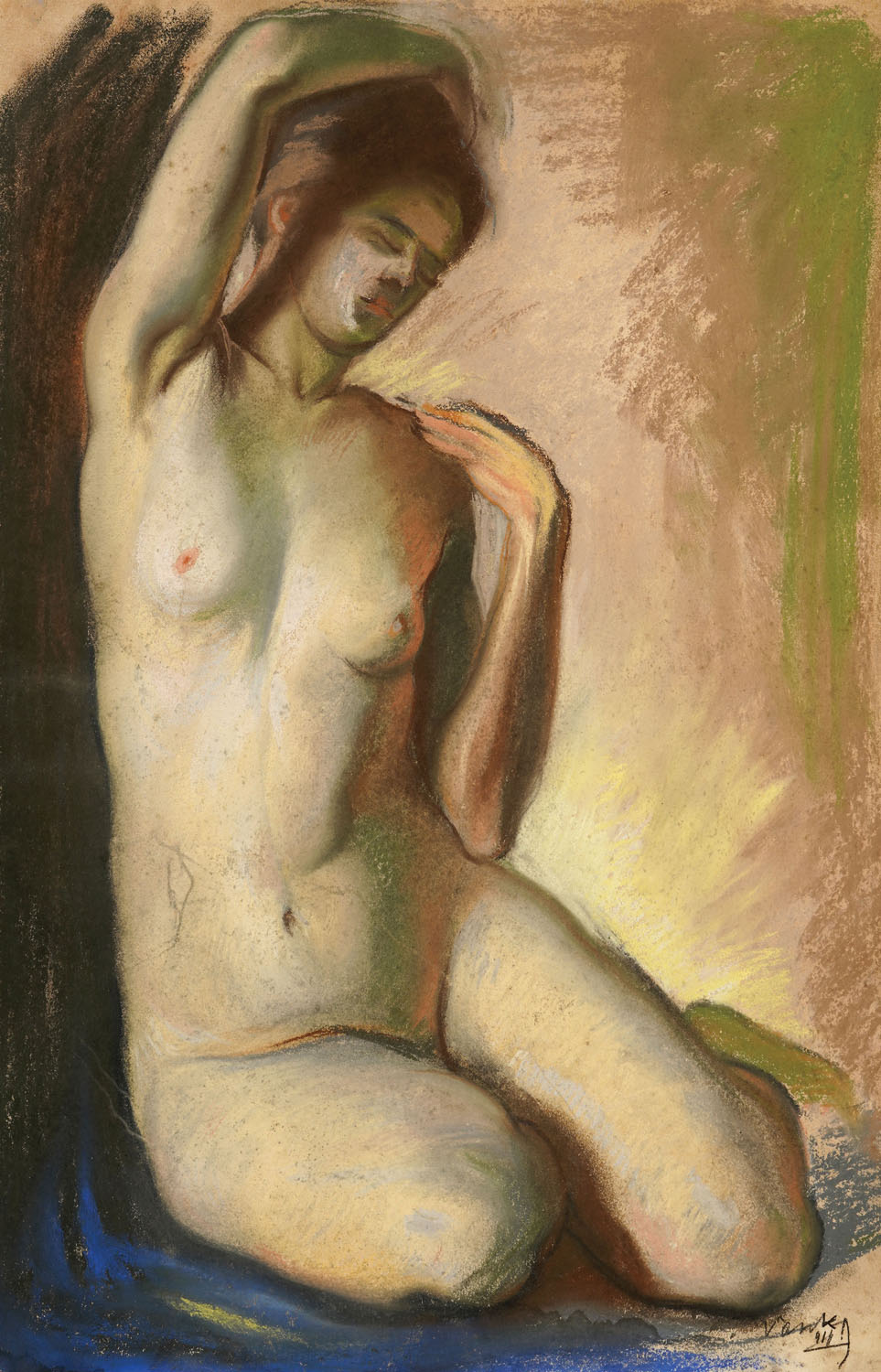 Painter Vanka was born in Zagreb, but grew up in the countryside, in Croatian Zagorje, which is worth emphasizing that it always inspired him for creative work. He lived in Kupljenovo near Pušća Bistra until high school and that rural landscape and milieu with its crosses and gingerbread cookies in houses permanently marked him. He began his painting education in Zagreb, at Čikoš's school, where he solidly mastered drawing and artistic storytelling. From Zagreb he left for Brussels to the local Académie des Beaux-Arts in 1910 and graduated with excellent success in the prescribed period. To understand the stylistic and morphological difference between this Study of a Seated Female Nude from 1911 and later Vanka's works, which show an evident influence of studied Spanish painters of ethnographic motifs (Ignacio Zuloaga), it should be emphasized that at the Belgian Academy at his time it was taught to paint shady with earth colors, a brown tone of old Flemish masters was forced and insisted on precise modeling of forms. Maximilian Vanka is well known and highly recognized painter in our country primarily for his large and brilliant compositions of national fervor and folk motifs and for experienced portraits of an expressionist sign. In painting Zagorje landscapes and Korčula marinas, he liked to use watercolor and pastel colors with which he knew how to capture the light of the chosen landscape like few plein air painters of the so-called Parisian painting education. At the retrospective of his work in Klovićevi dvori Gallery (2002), his works from the 1920s of the last century clearly testified to this. BRP