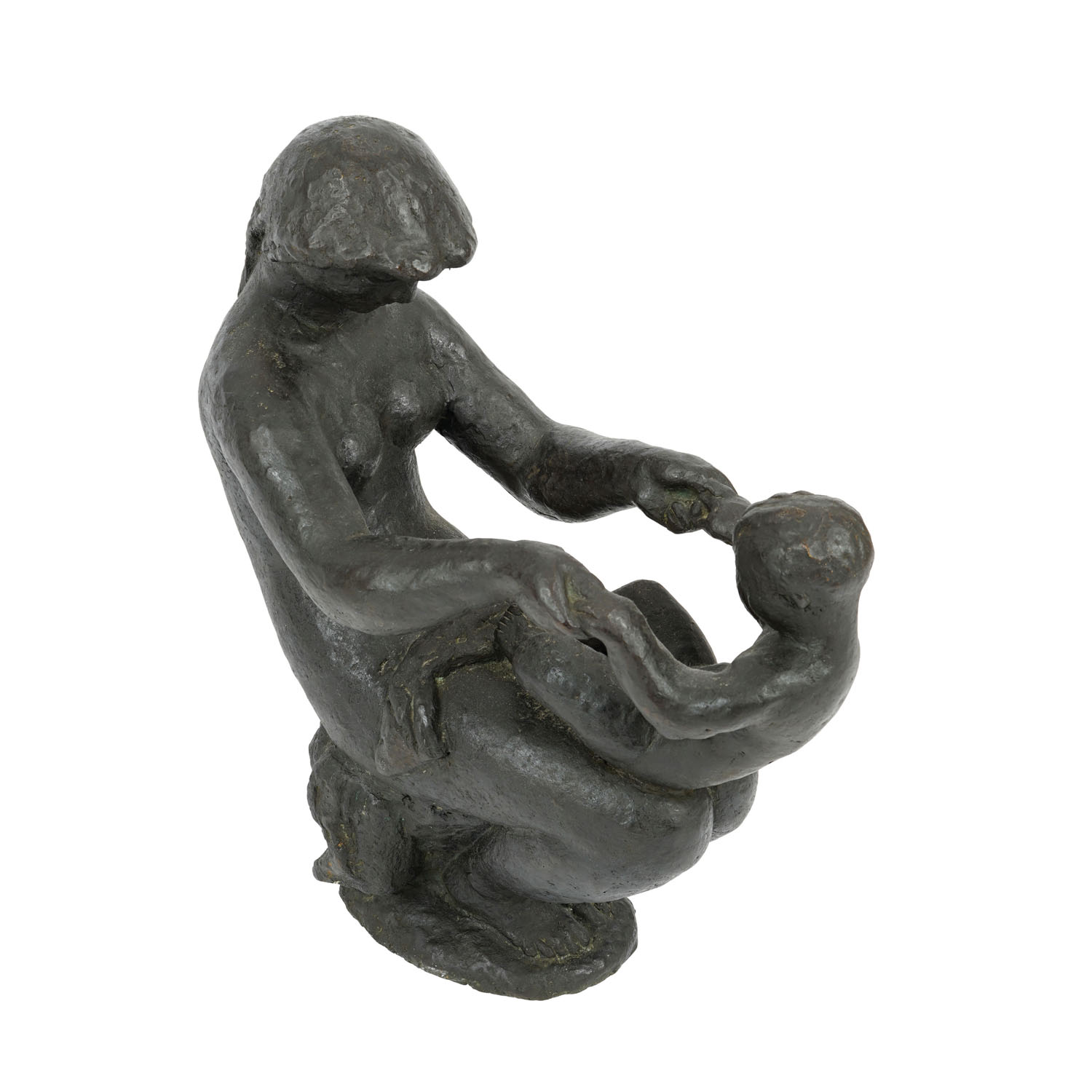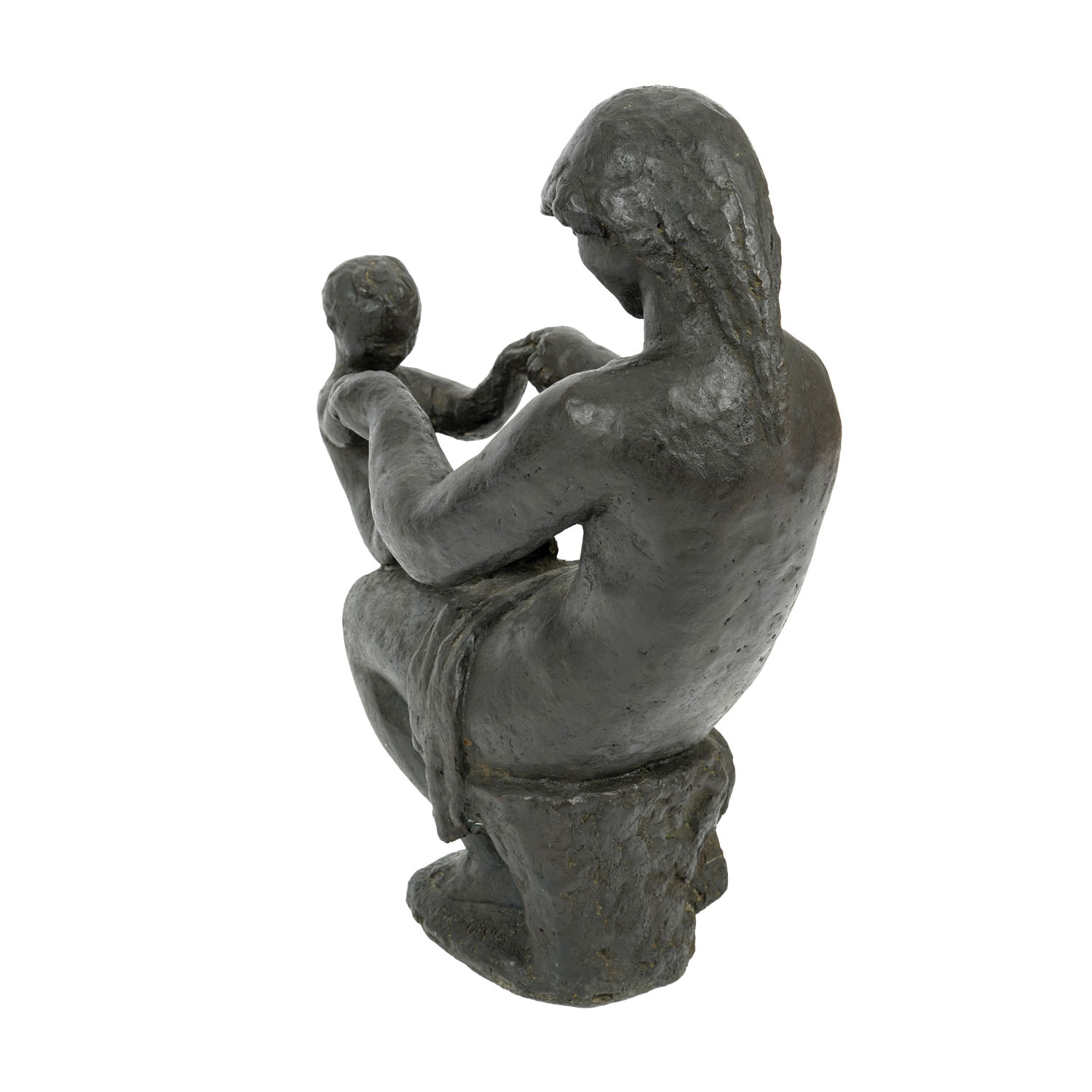 Frano Kršinić is one of the more significant Croatian sculptors of the 20th century, whose opus combines the elegance and rhythm of classical, realistic sculpture with synthesized shapes, characteristics of modernism. Kršinić was greatly inspired by the works of French sculptor Aristide Maillol who strived to find a bond between the shape of classical sculpture and modern expressions that reduce the description. He was born in Lumbarda on Korčula, in 1897, and died in Zagreb in 1982. He was active in the establishment of the Earth group, and after the Second World War he ran the Master's Workshop at the Academy of Fine Arts in Zagreb. The composition for the Mother's Game sculpture, along with several other motifs depicting the relationship between mother and child, was conceived in the 1930s, and with some revisions and on a larger scale, the sculpture was installed in front of the Dr. Andrija Štampar Public Health Institute in Zagreb in 1978. This is a smaller version of that cult Kršinić's sculptural composition. In a dynamically balanced composition, a moment is captured in which the mother spreads her arms to the child in her lap. The anatomies are, as usual with Kršinić, precise and recognizable, but simplified, displayed without too many details. As a result, they are reduced to a very elegant game in which parts of the body fluidly pour into one another. In this way, the temporal dimension of the scene is emphasized, or the impression of a stopped moment of an action that is in constant motion. In the harmonious, open and dynamic form of this sculpture, an ideal archetype of motherhood is depicted as a transfer of tenderness and cheerfulness. FG