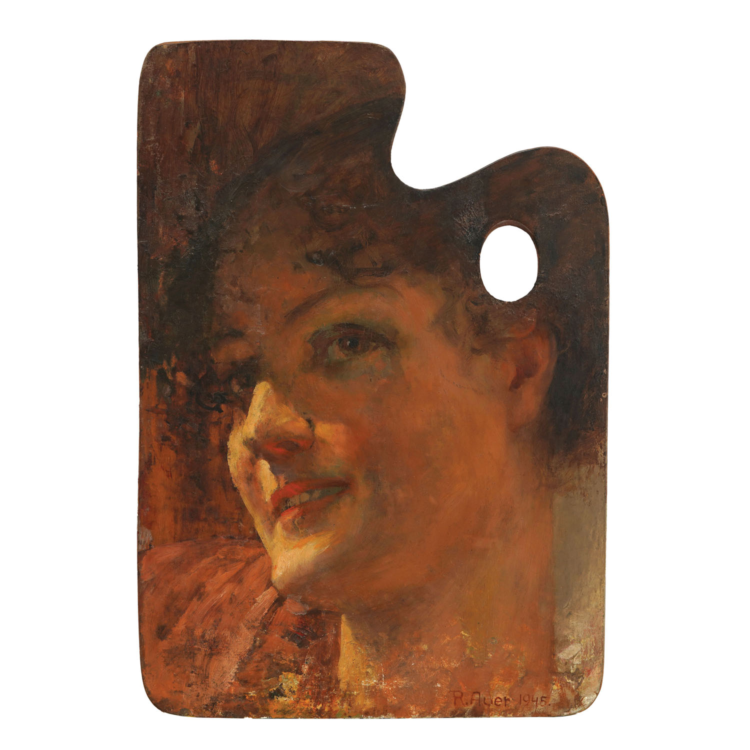 Rober Auer (Zagreb, 1873 – Zagreb, 1952) was a Croatian painter who remained faithful to Art Nouveau until his death. He studied in Zagreb, Vienna, Munich, and also spent some time living and working in the USA. He painted still life, portraits, allegorical compositions, and sensual nudes. It was his female nudes that became a hallmark of his work. The oil on panelling piece entitled "Smile" is signed and dated in the lower right corner. This was created during the final decade of the artist's life. It depicts a female semi-profile, with a slight turn of the head, exuding simplicity and aesthetic appeal.