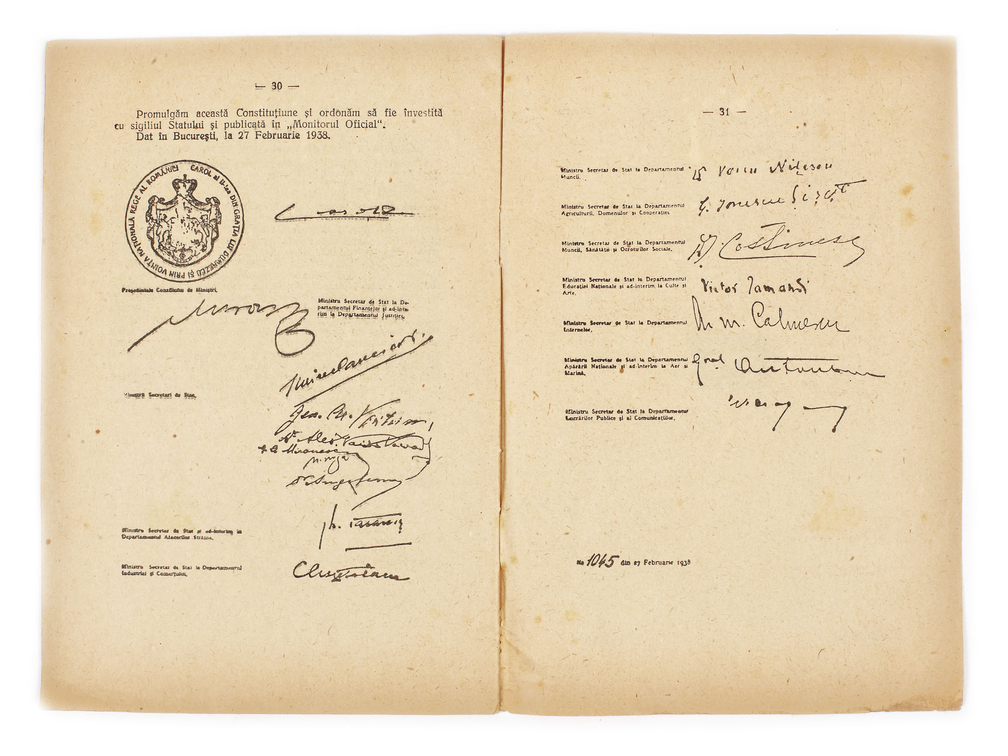 44. "Constituţiunea Regele Carol al II-lea", promulgată la 27 februarie 1938