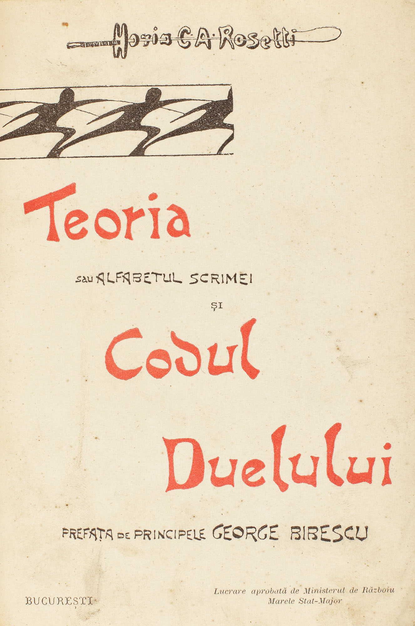 60. ”Teoria sau alfabetul scrimei și codul duelului”, de Horia C.A. Rosetti, prefaţă de Principele George Bibescu, București, 1901