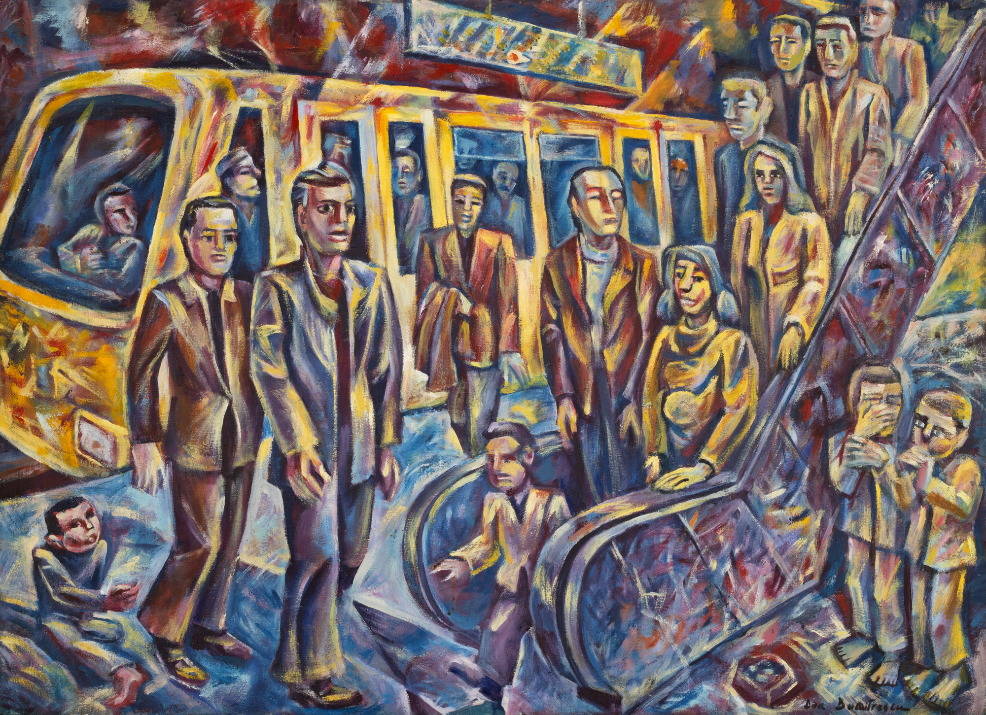 semnat dreapta jos, cu negru, "Dan Dumitrescu"; semnat, datat și intitulat pe verso, cu negru, "Dan Dumitrescu, Stația de metrou,2002"