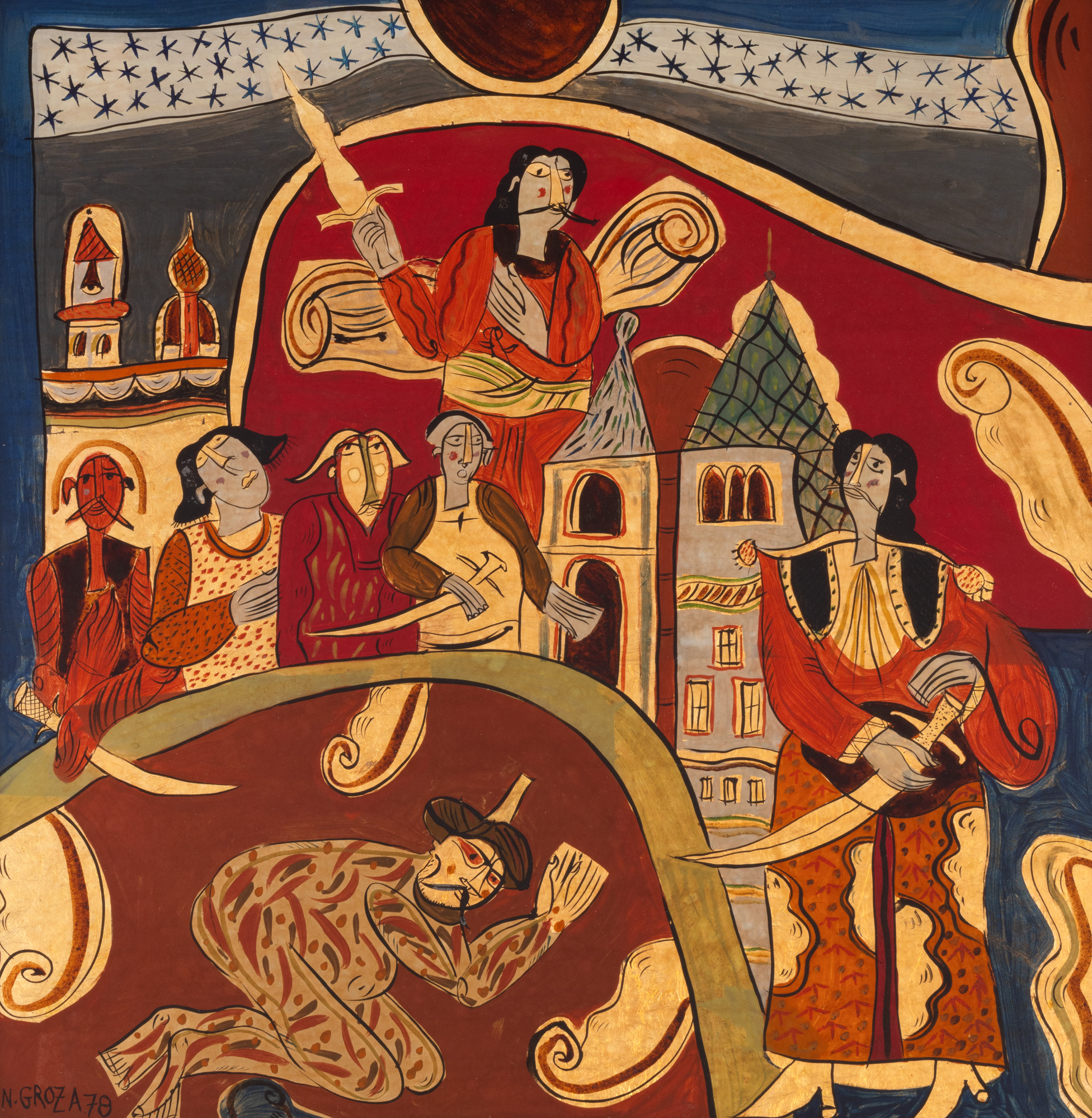 semnat și datat stânga jos, cu negru, ”N. Groza, (19)78”