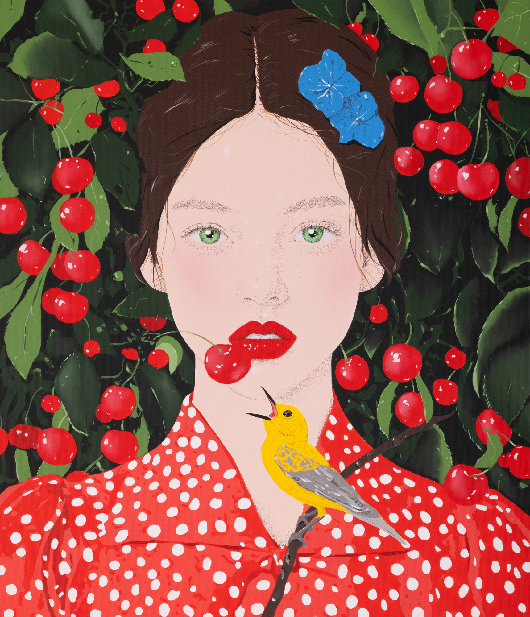 "The Longing" investighează felul în care dorința modelează experiența afectivă. Nu e o reprezentare explicită a plăcerii sau a absenței, ci mai degrabă o sugestie a tensiunii dintre ceea ce e dorit și ceea ce rămâne inaccesibil. Lucrarea nu oferă un răspuns, ci creează spațiu pentru a contempla prezența tăcută a dorinței în construcția sinelui. Figura feminină întruchipează acea așteptare specifică tinereții — între vulnerabilitate și curiozitate. Cireșele devin simboluri ale tentației, iar pasărea, un ecou al dorinței exterioare care întâlnește disponibilitatea interioară.