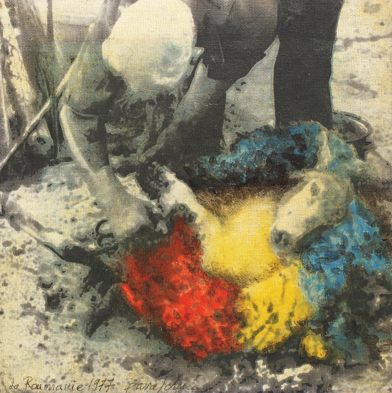 semnat, datat și intitulat stânga jos, în creion, paraschiv, 1977, "La Roumanie"