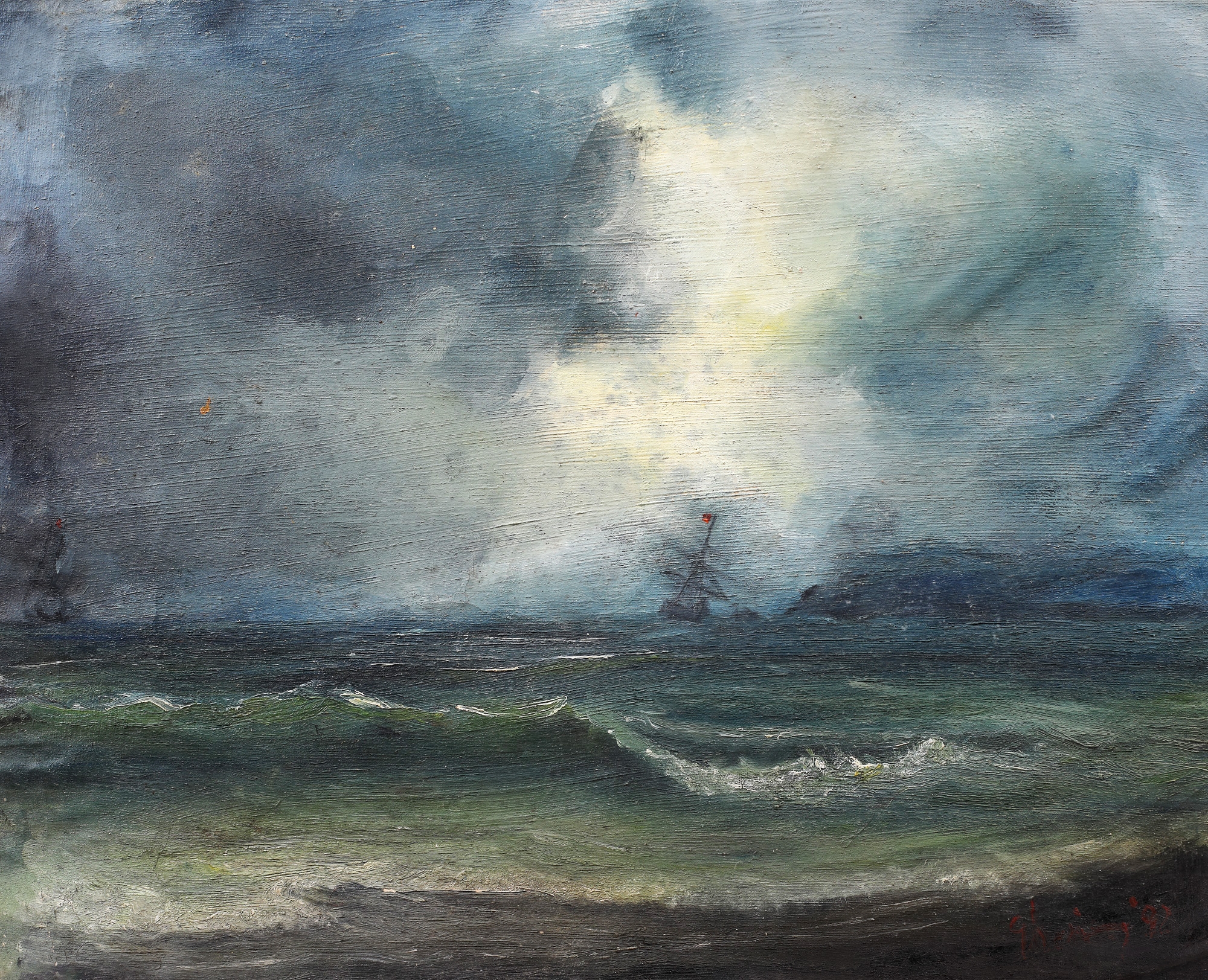 semnat și datat dreapta jos, cu roșu, "Ghenie, (19)92"