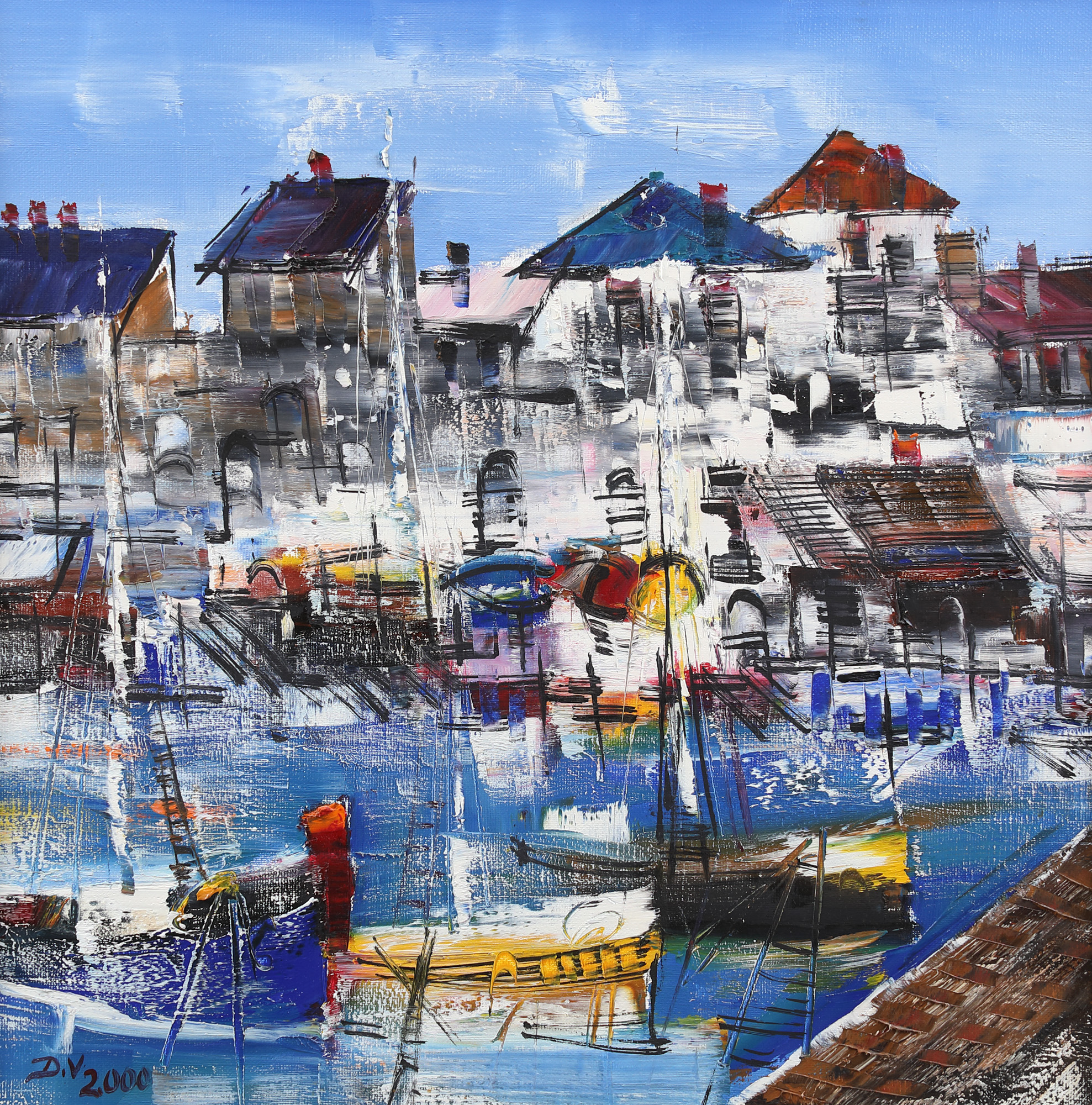 semnat și datat stânga jos, cu negru, "D.V., 2000"