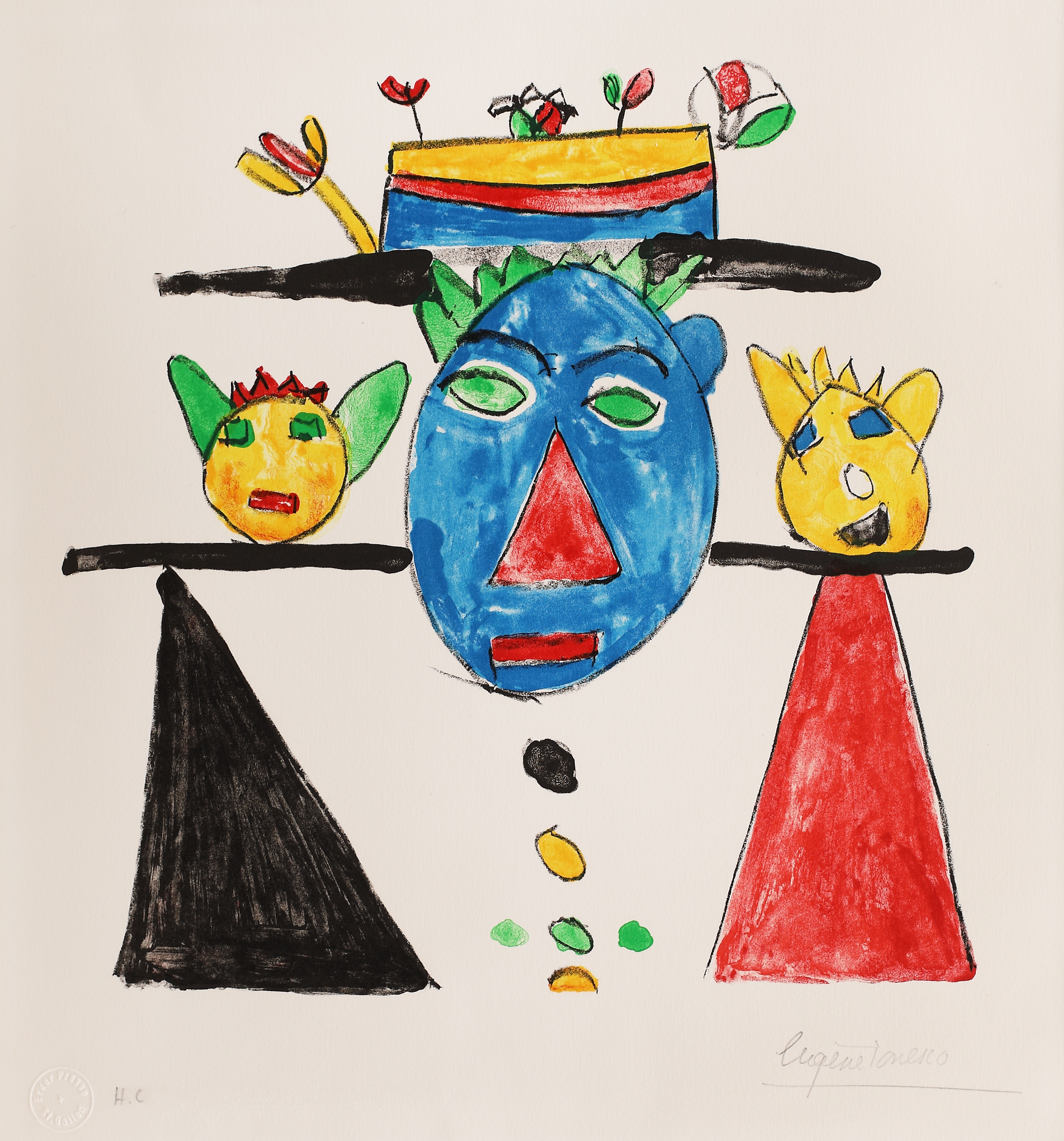 semnat dreapta jos, în creion, "Eugen Ionesco"; notat stânga jos, în creion, "HC"