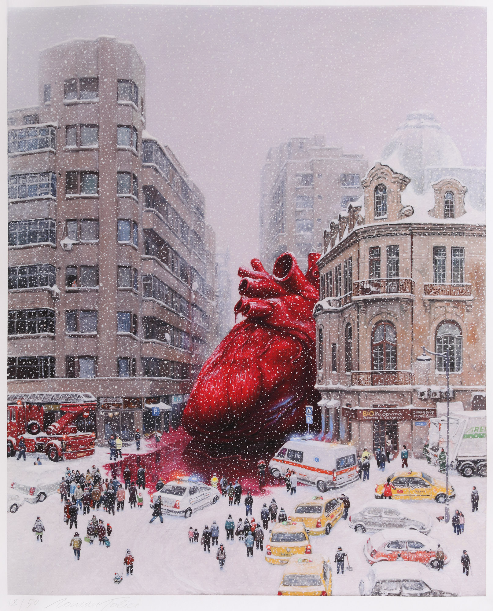 semnat și numerotat stânga jos, în creion, "18/ 50, Roman Tolici"