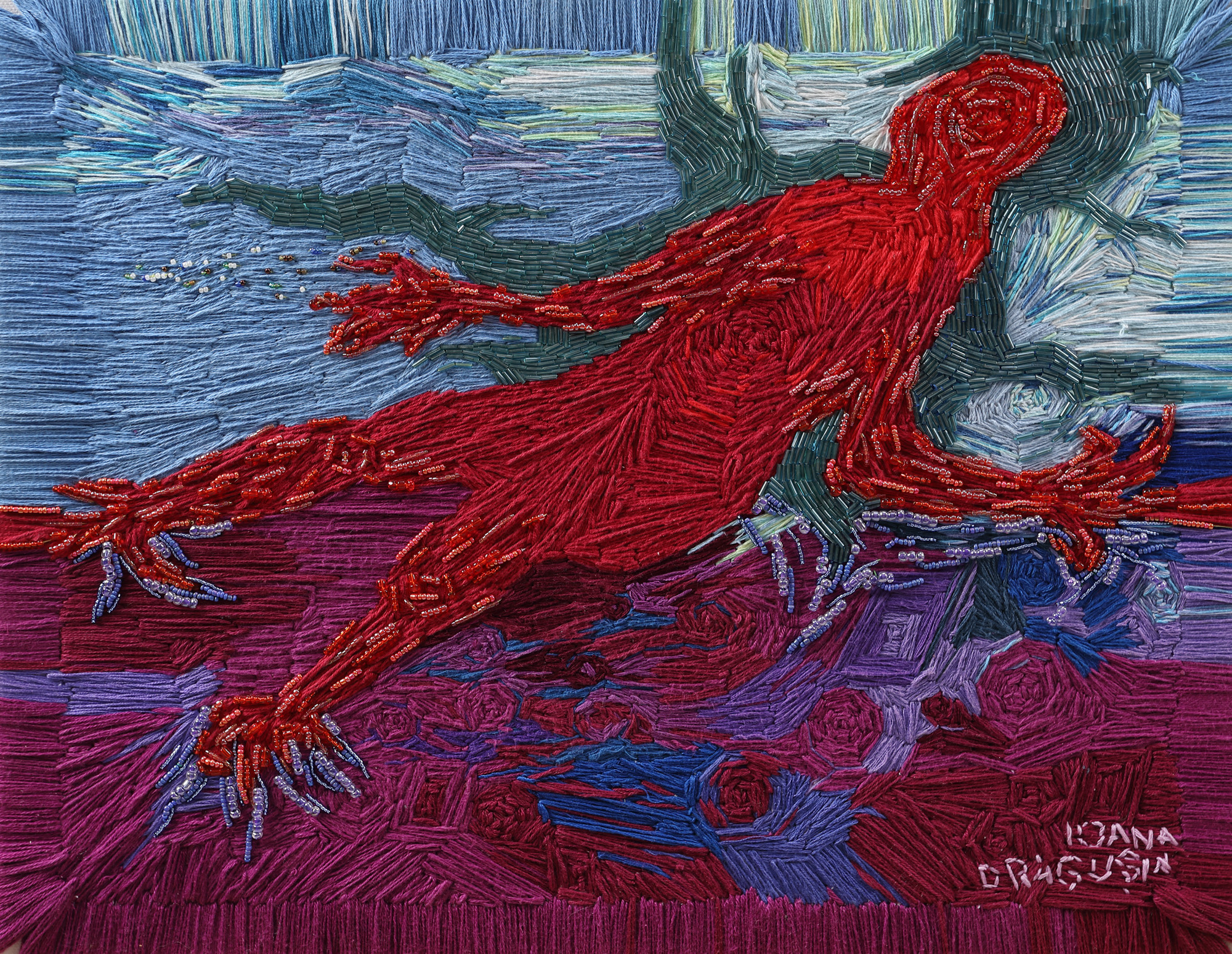 semnat dreapta jos, țesut cu alb, "Ioana Drăgușin"