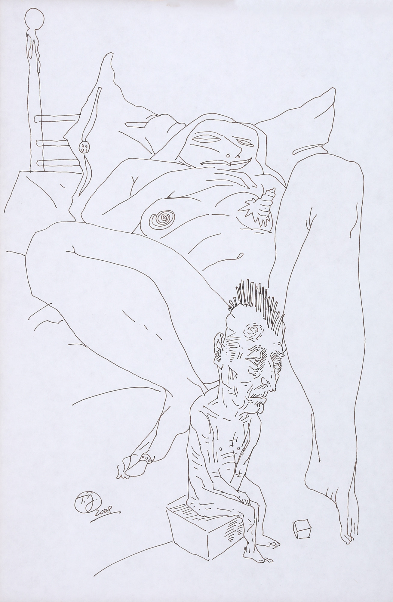 semnat și datat stânga jos, în peniță, "TJ, 2008"