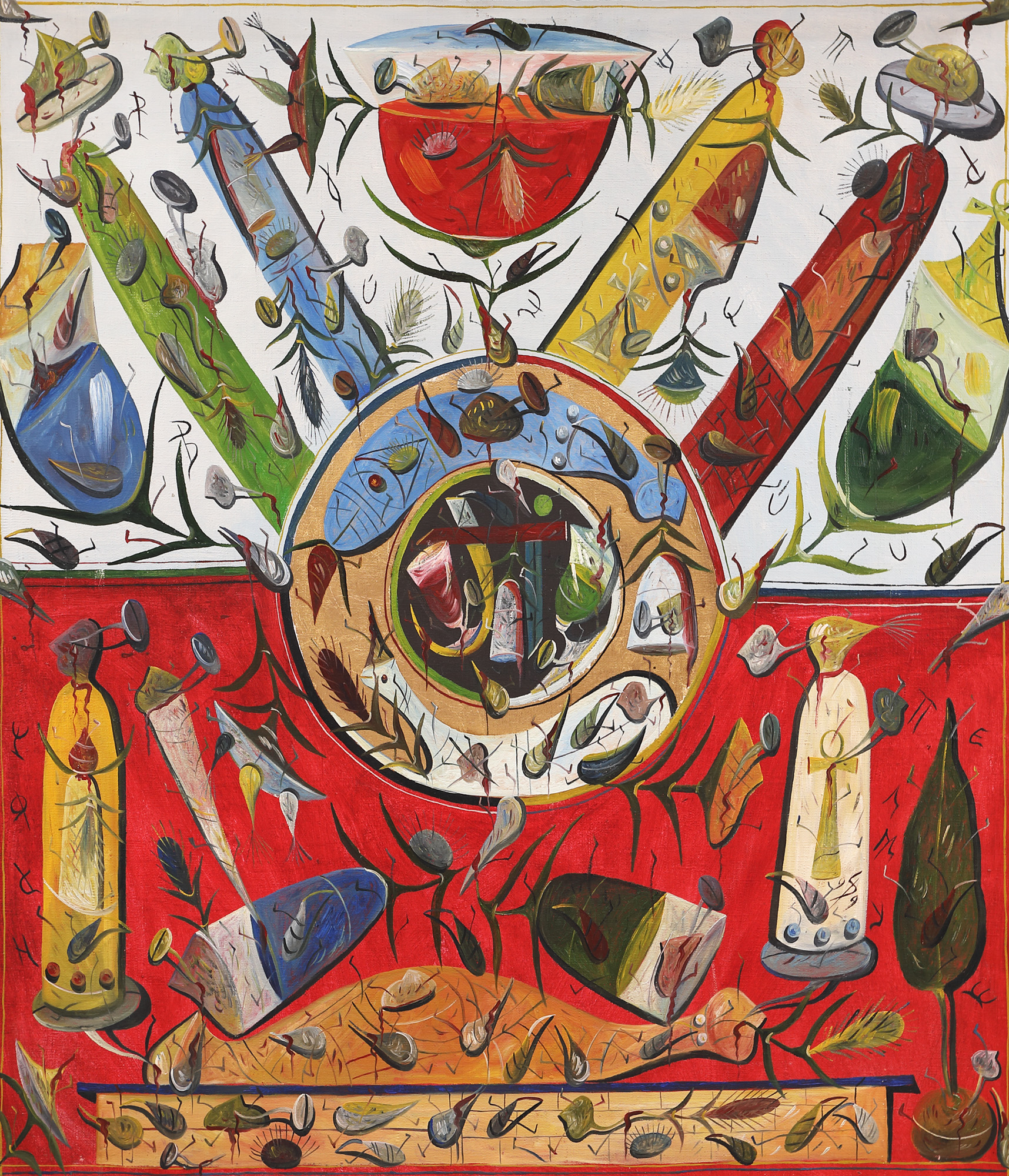 semnat, datat, intitulat și dedicat pe verso, cu negru, "Ștefan Pelmuș, august 1999, Roata vieții, In memoriam Ion Pacea"