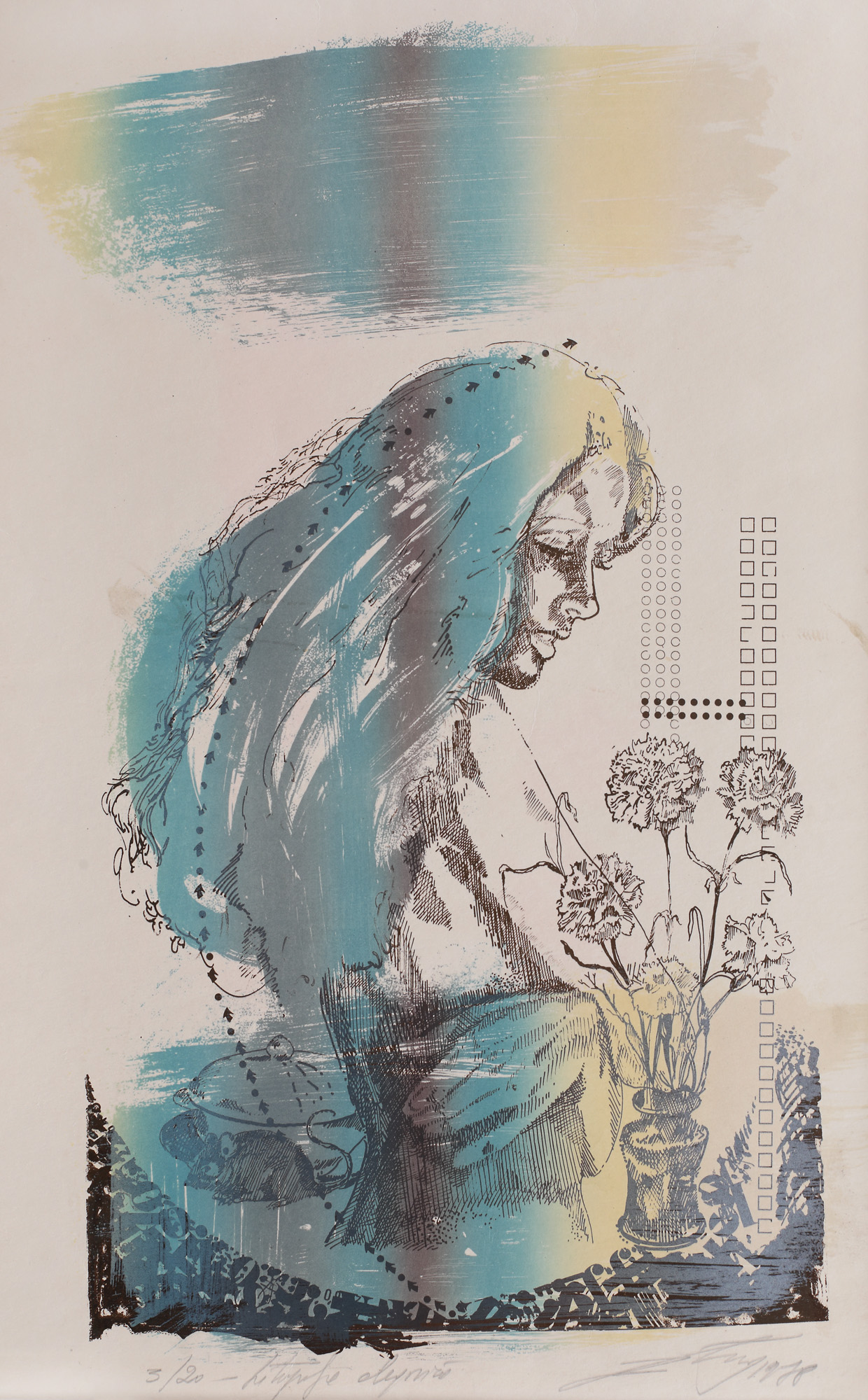 semnat și datat dreapta jos, în creion, "Zamfir, 1978"; numerotat și intitulat stânga jos, în creion, "3/20, litografie alegorică"