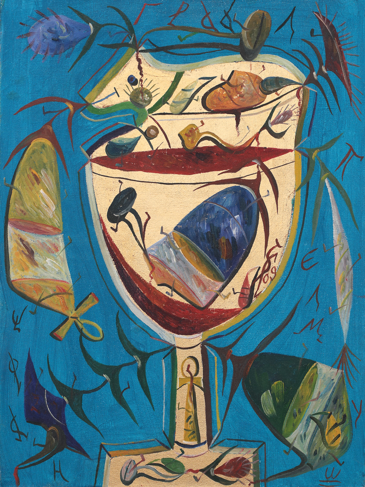 semnat și datat lateral dreapta, cu roșu, "SP, (20)09"