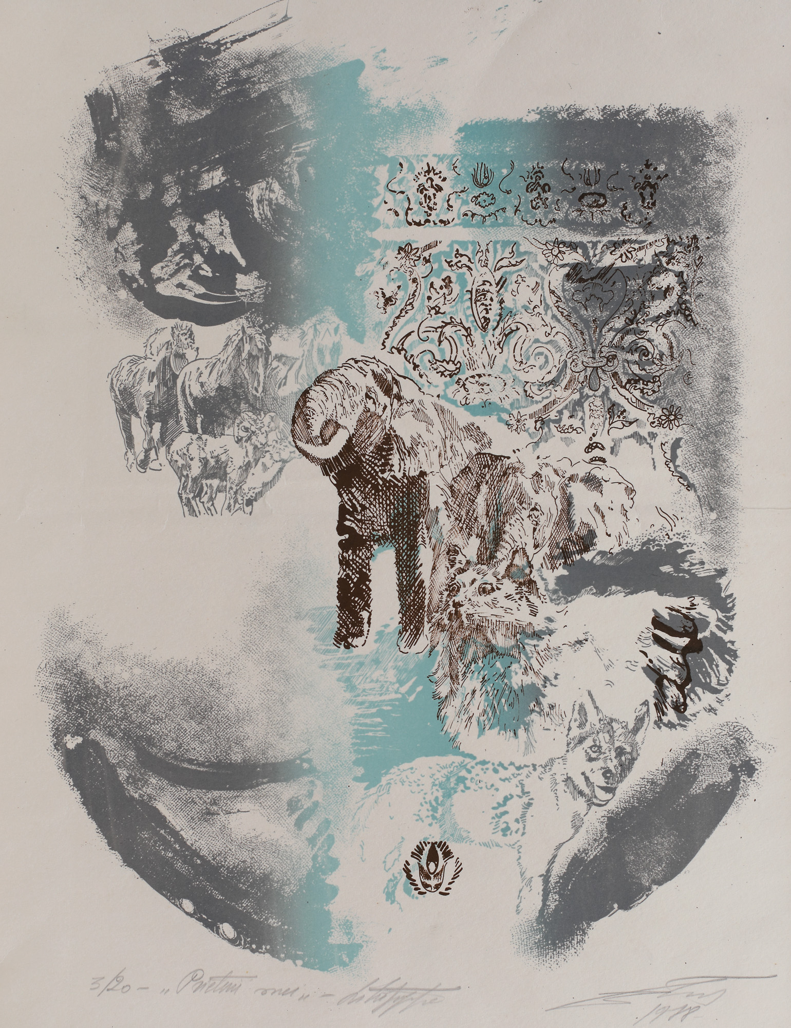semnat și datat dreapta jos, în creion, "Zamfir, 1978"; numerotat și intitulat stânga jos, în creion, "3/20, Prietenii mei"