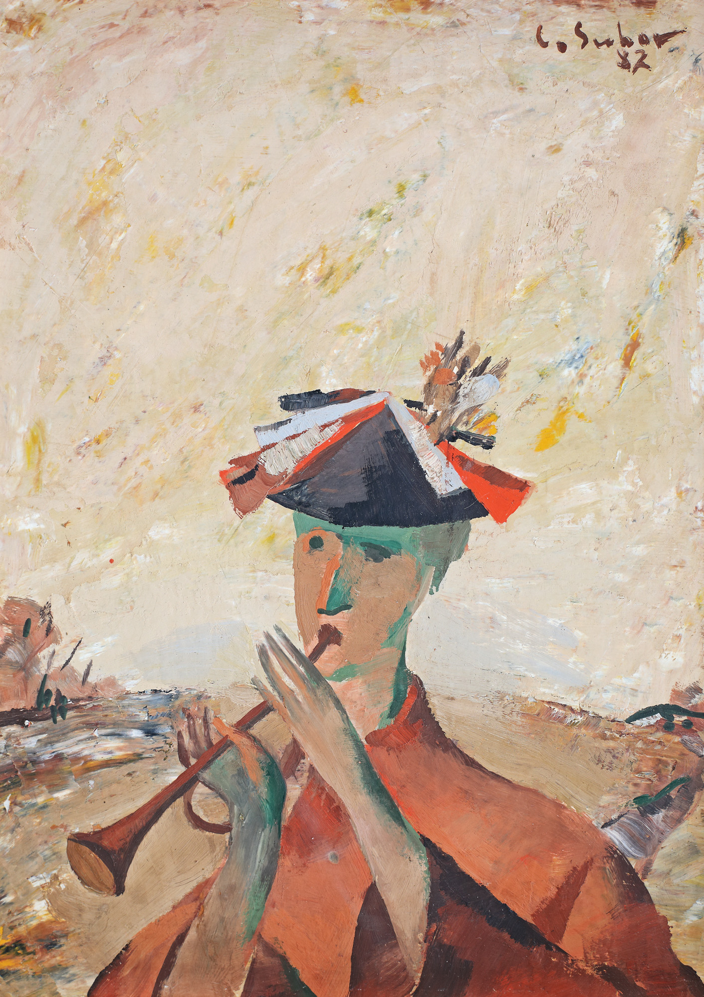 semnat și datat dreapta sus, cu brun, "L. Suhar, (19)82"; dedicat pe verso, în creion, "Dlui arhitect Sorin Stinghie, cu aleasă considerație, București, L. Suhar"