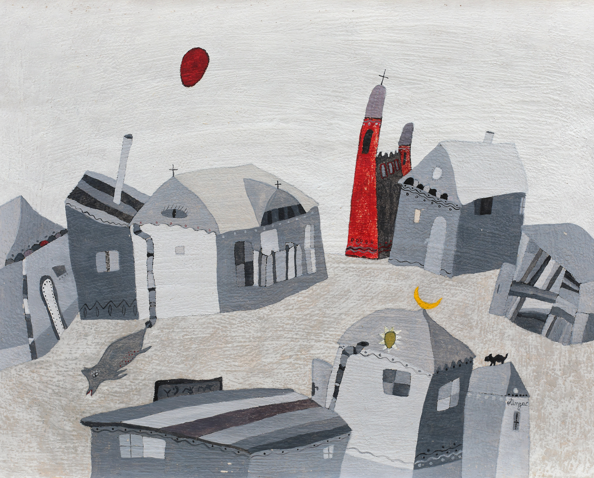 acrilic, cerapastel și guașă pe carton
