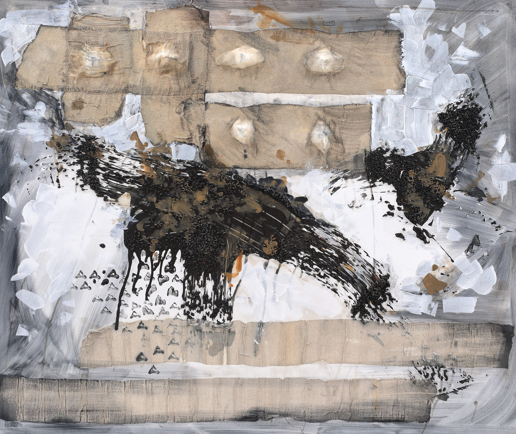 ulei, tifon, orez și polistiren pe pânză