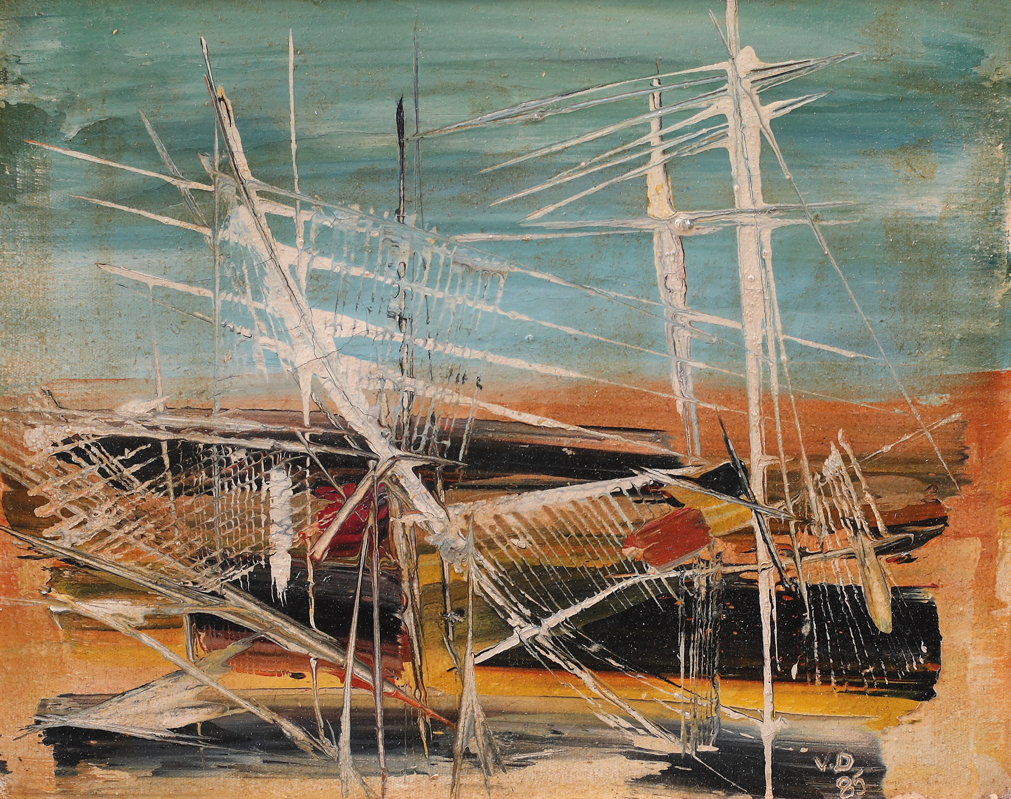 semnat și datat dreapta jos, cu alb, "VD, (19)85"