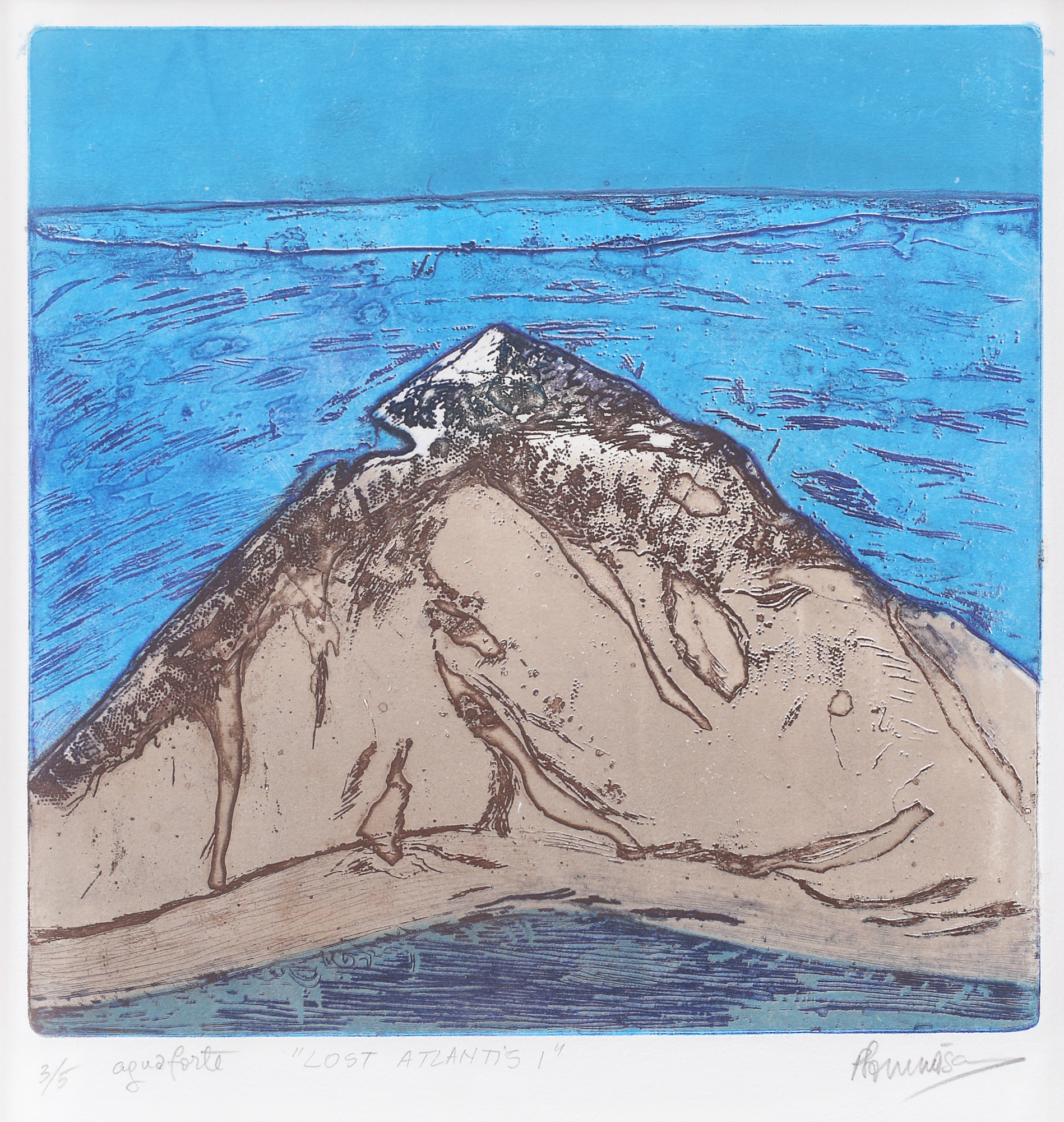 semnat, intitulat, numerotat și notat central jos, în creion, "R. Lomnășan, Lost Atlantis, 3/5, aquaforte"
