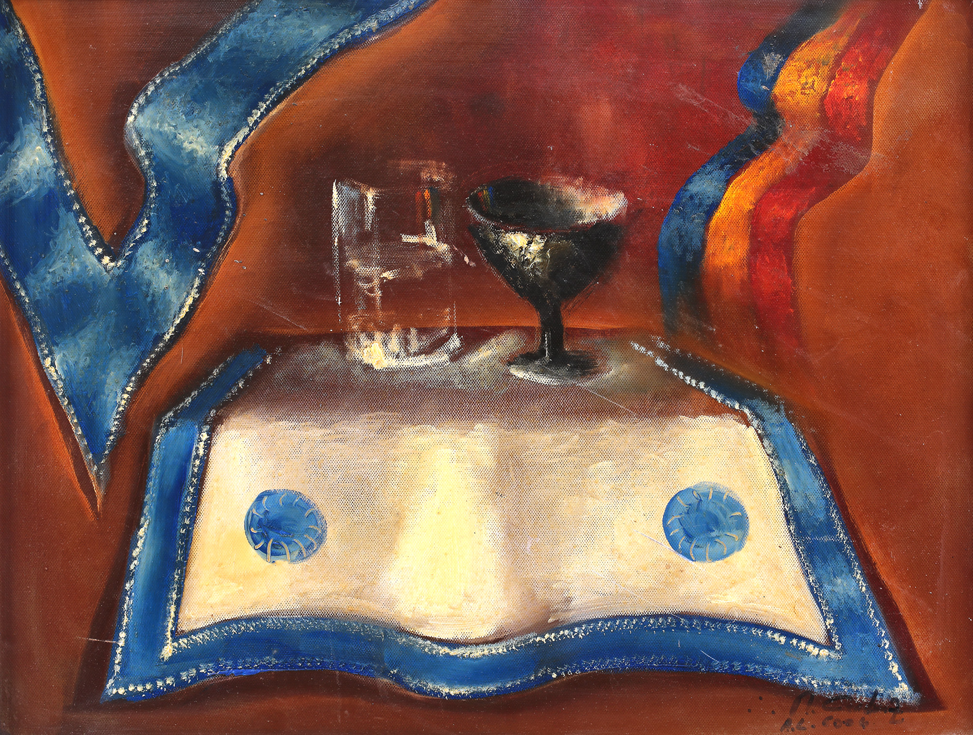 semnat și datat dreapta jos, cu negru, "M. Condruz, 2004"