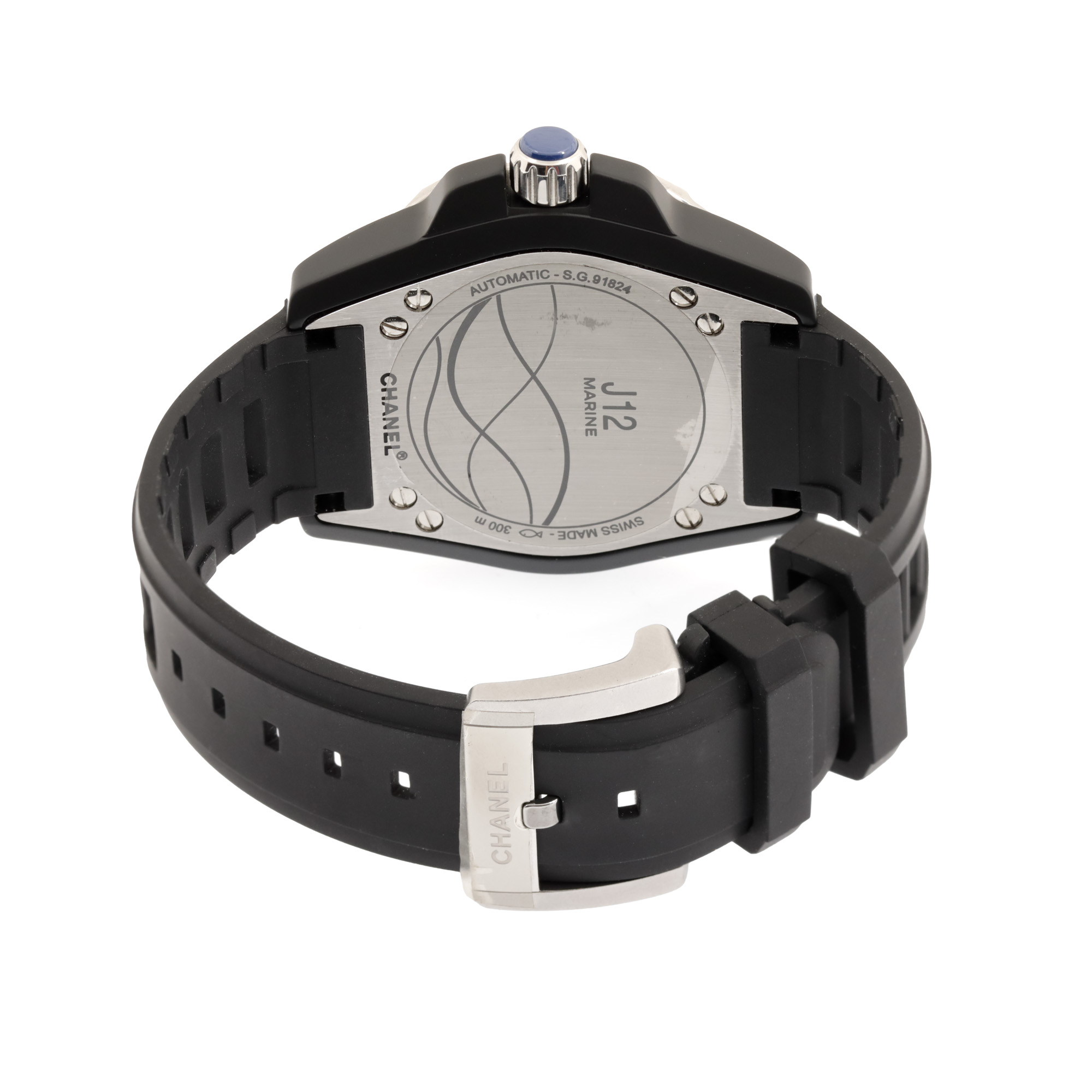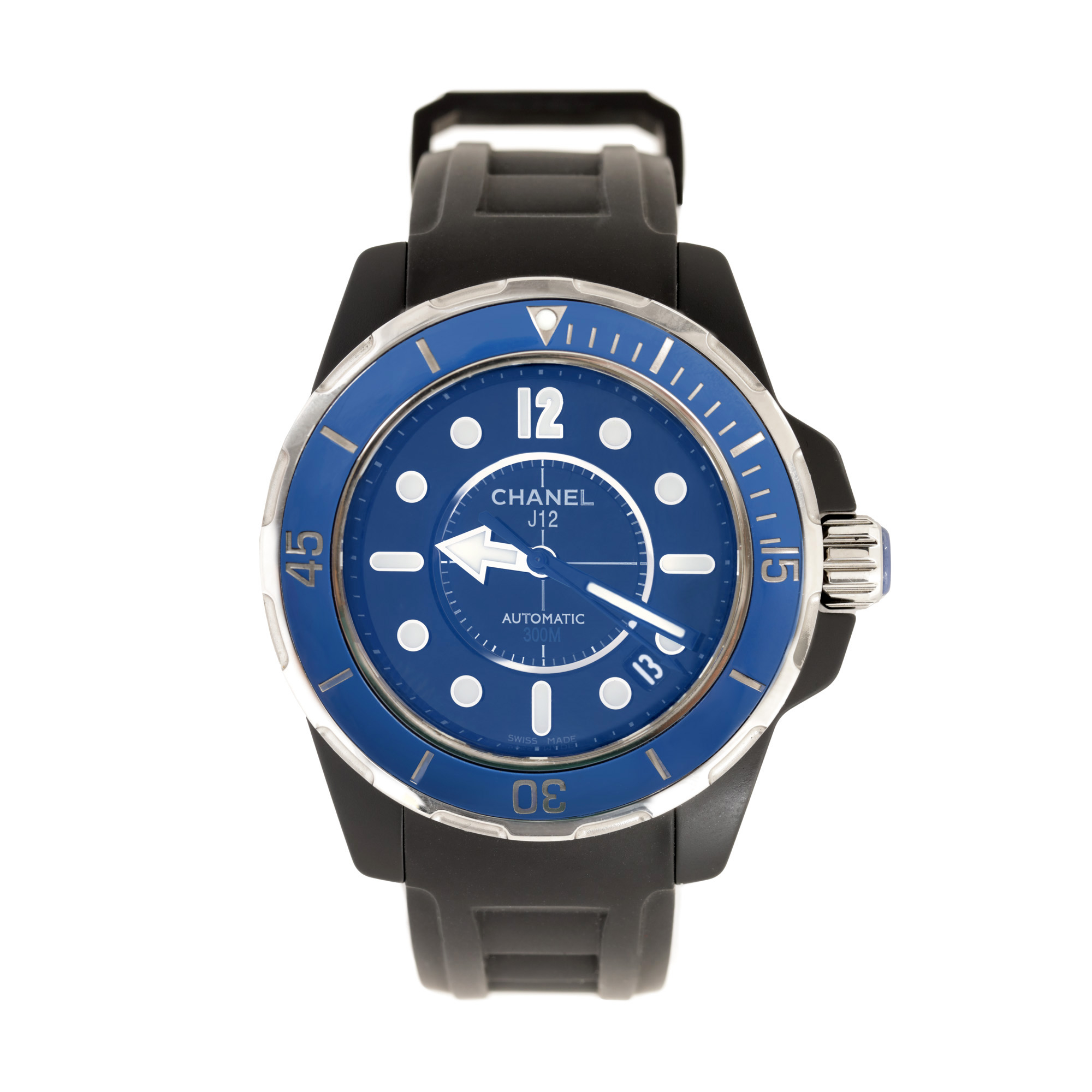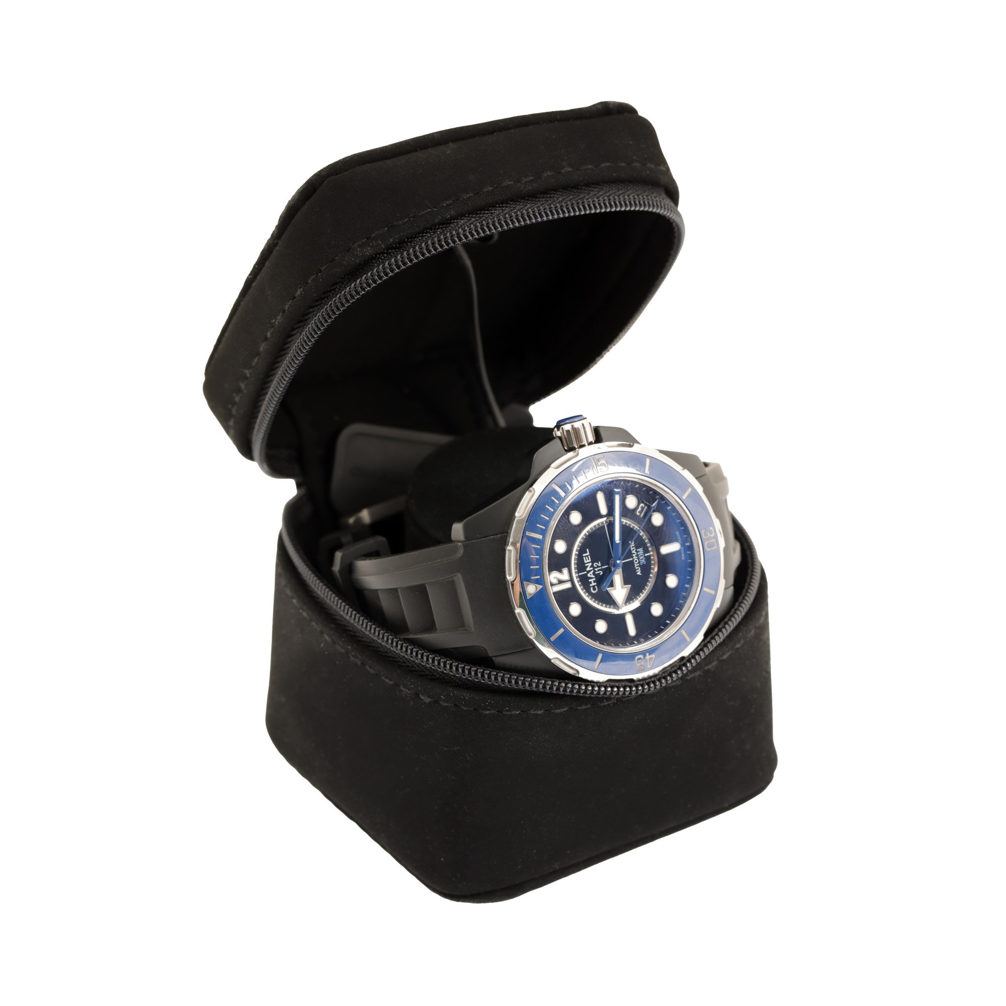 62. Ceas Chanel J12 Marine, de mână, bărbătesc, însoțit de borsetă de călătorie și card de garanție [Cca. 2020]