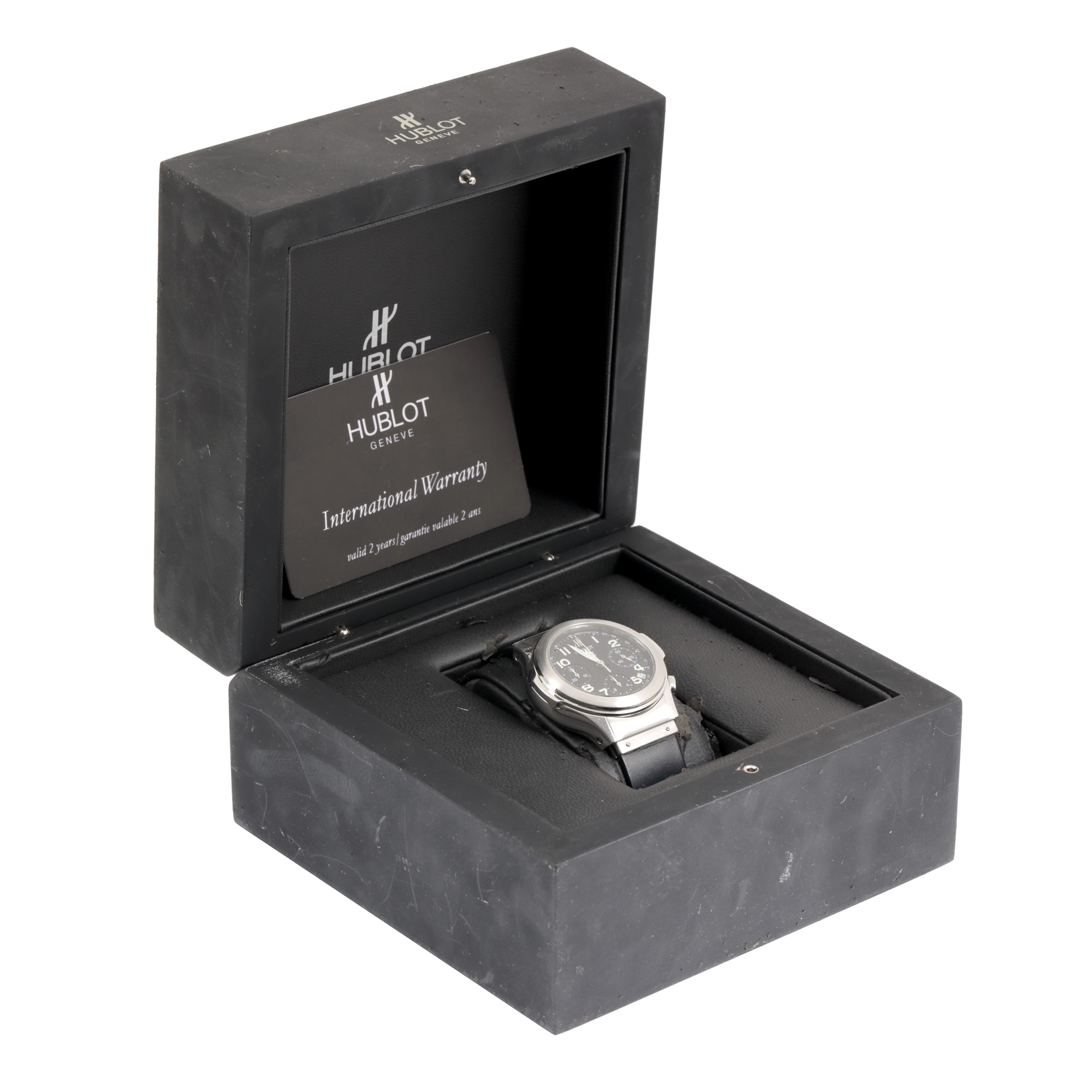 43. Ceas Hublot MDM Geneve Automatic Chronograph, de mână, unisex, însoțit de cutia originală și card de garanție [Cca. 2000]