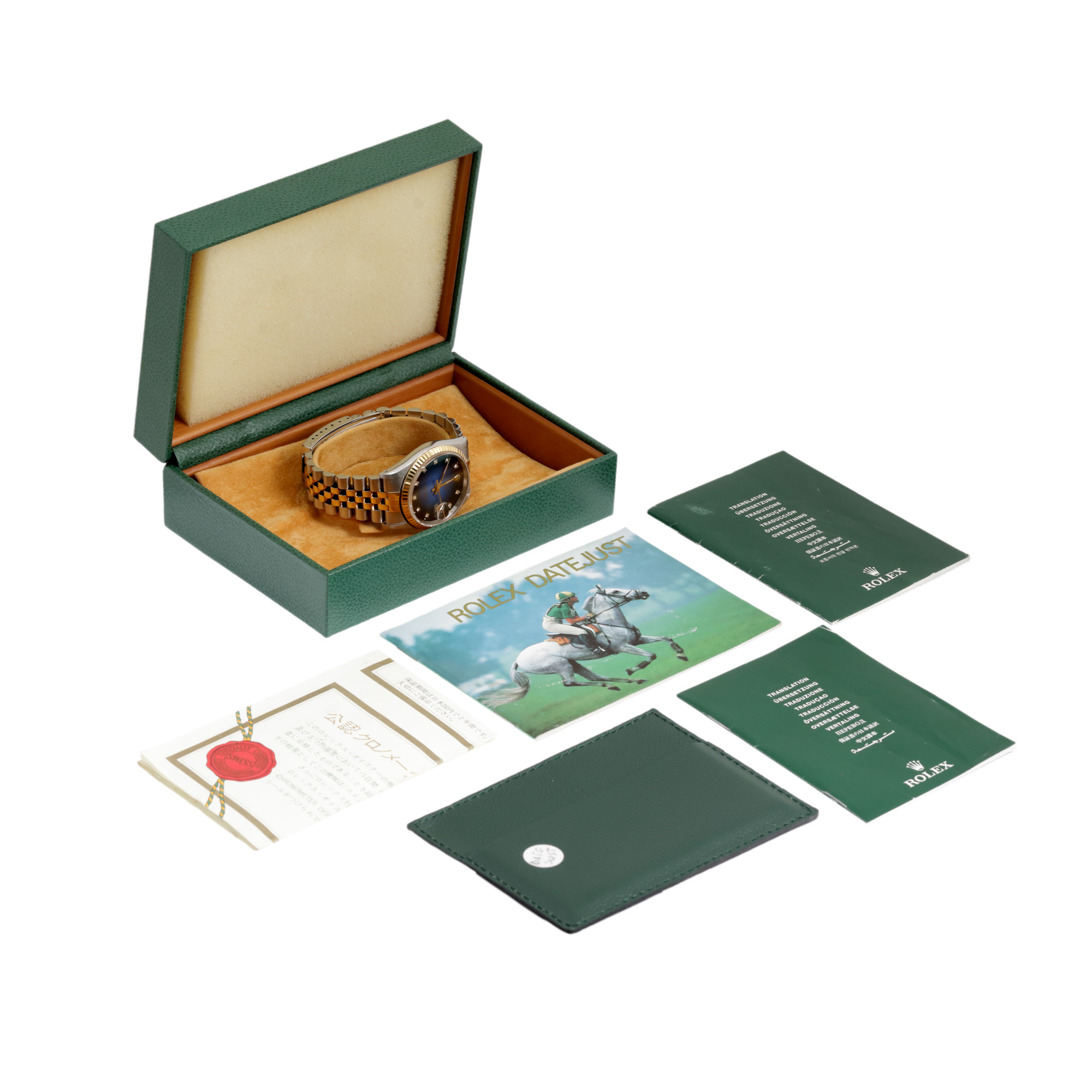 2. Ceas Rolex Datejust, din aur și oțel, cu diamante, de mână, bărbătesc, însoțit de cutia originală, certificat de garanție, atestat pentru chronometru și manual de utilizare [1996]