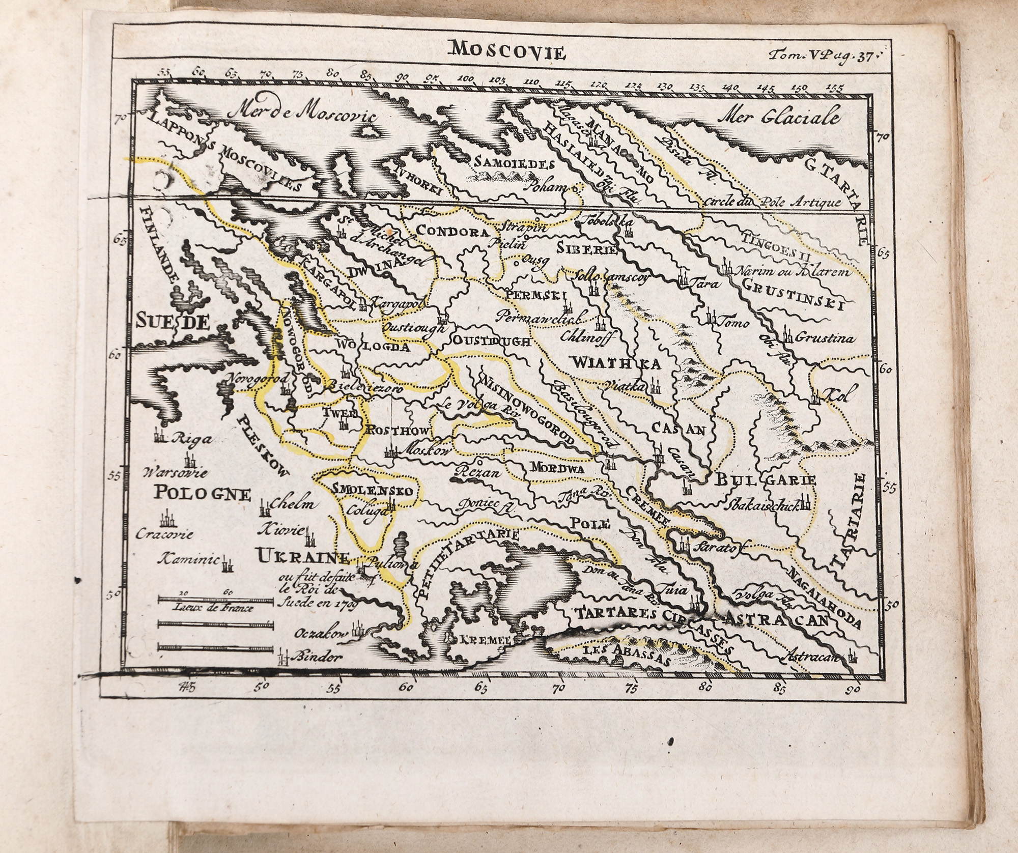 87. Colegat ”Harta lumii (planiglob)”, de Nicolas Sanson, Paris, cca. 1683, cu 28 de hărți; ”Personaje ale pasiunilor, gravate după desenele ilustrului monsieur le Brun”, cca. 1720, cu 18 gravuri; ”Noi principii de desen și diferite caracteristici ale pasiunilor”, de părintele S. Benoist, Paris, cu 9 gravuri, piesă rară, de coleție