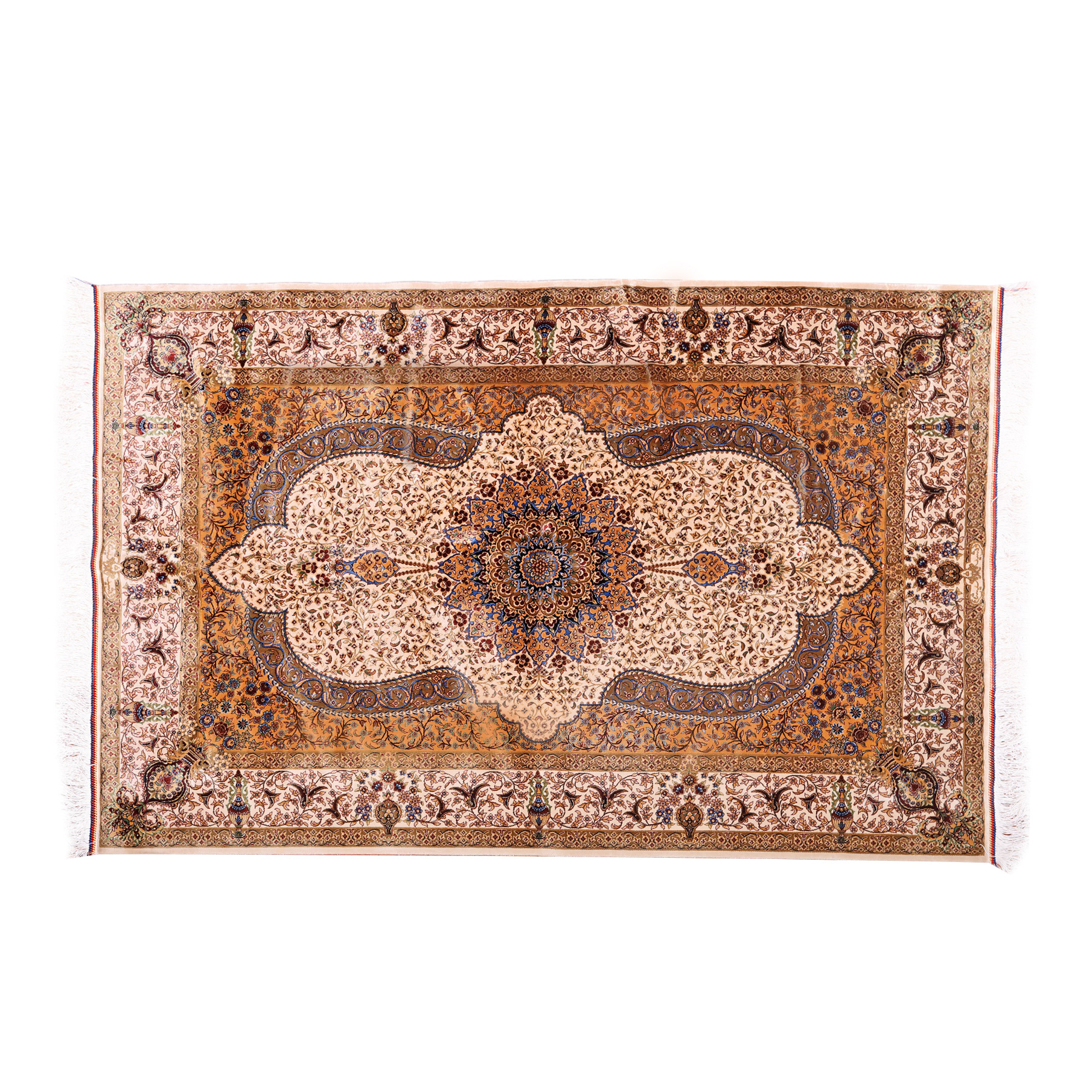 130. Covor Isfahan din mătase, bogat decorat cu motive florale, Iran [a doua jumătate a sec. XX]