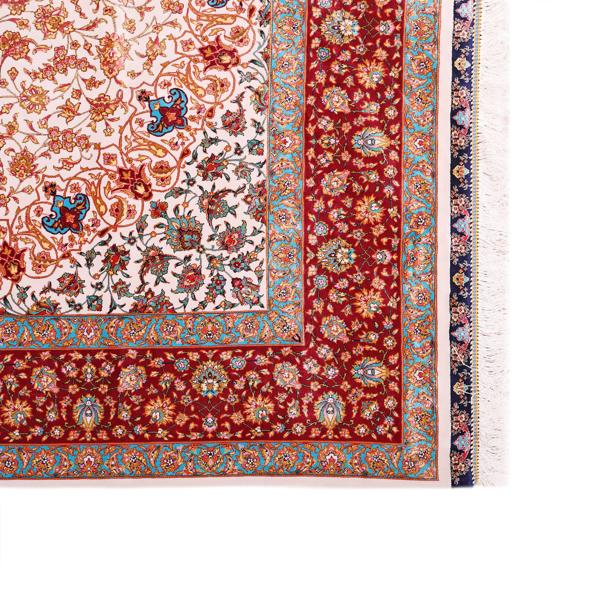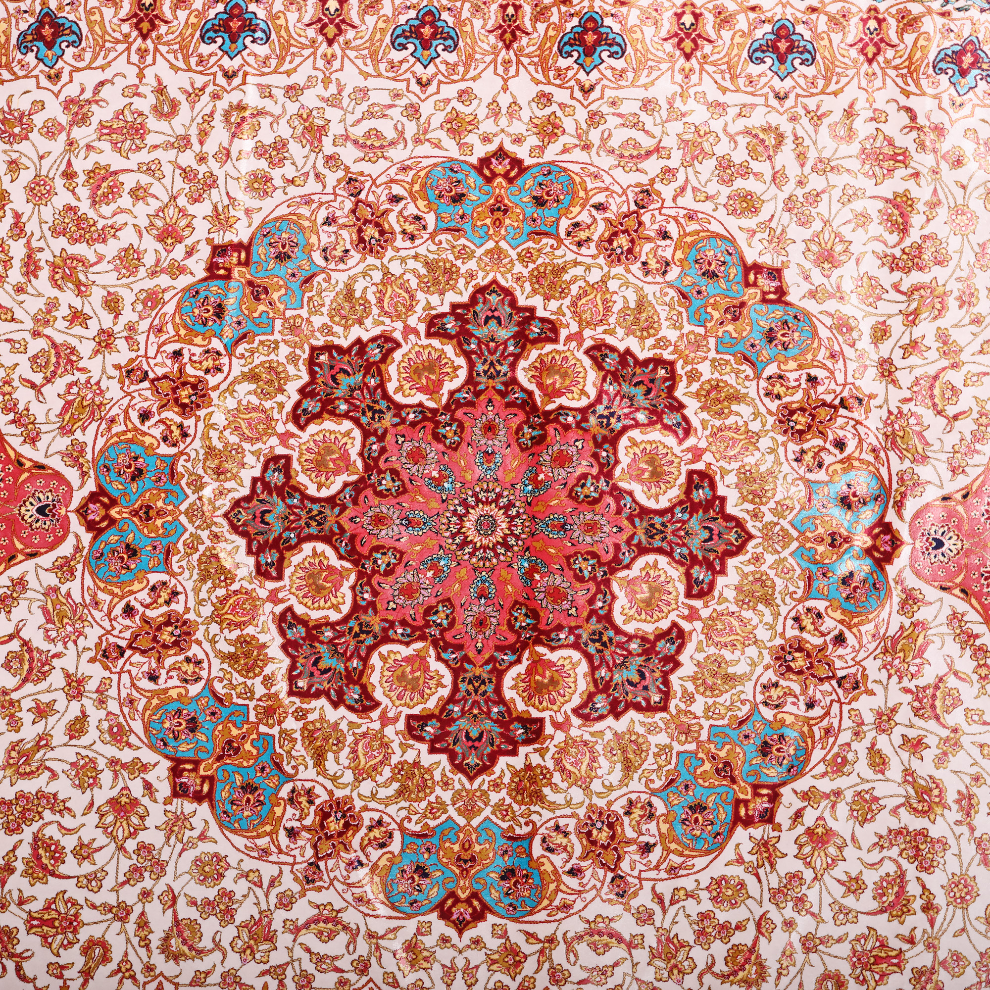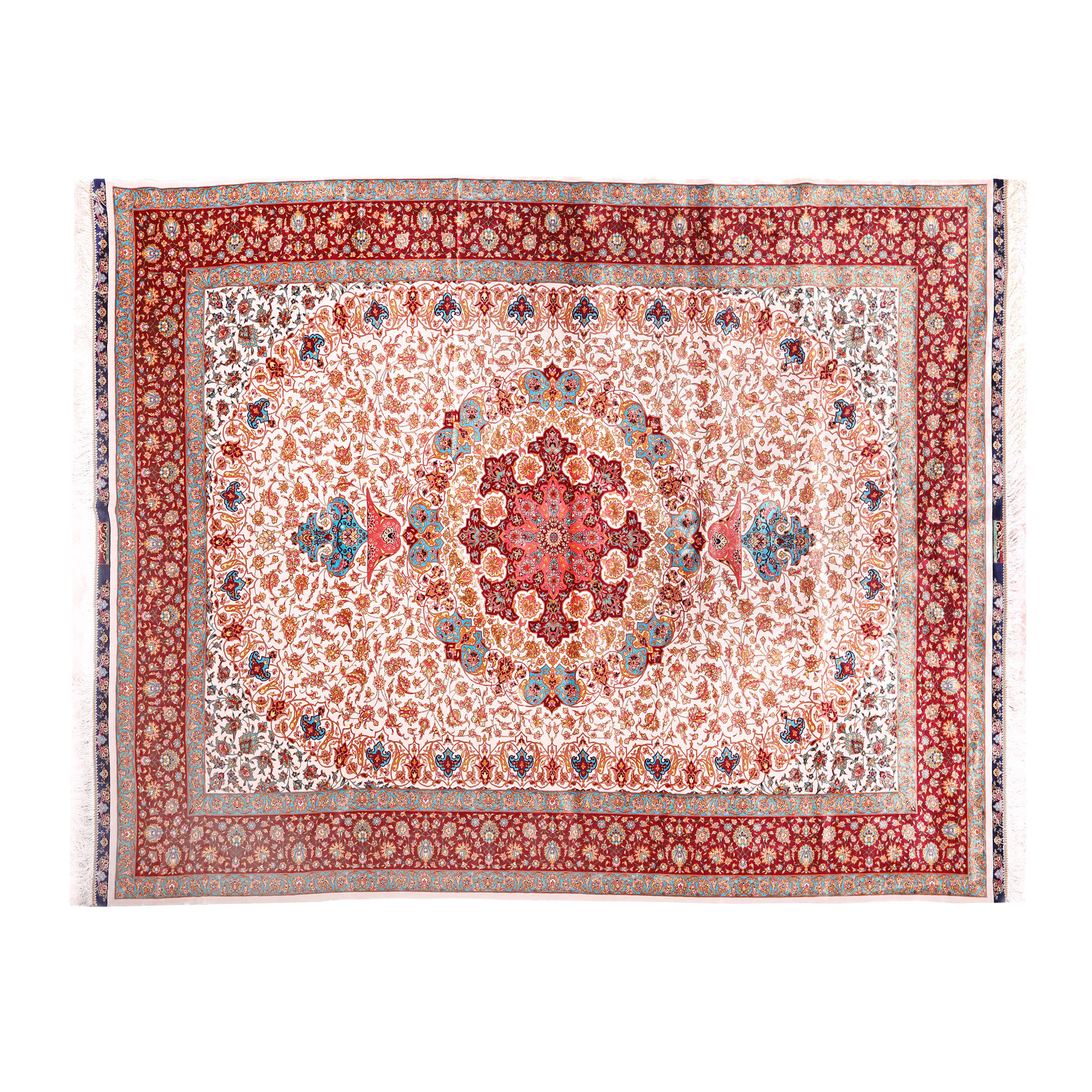 124. Covor Qum din mătase, decorat cu motive florale elaborate, Iran [a doua jumătate a sec. XX]