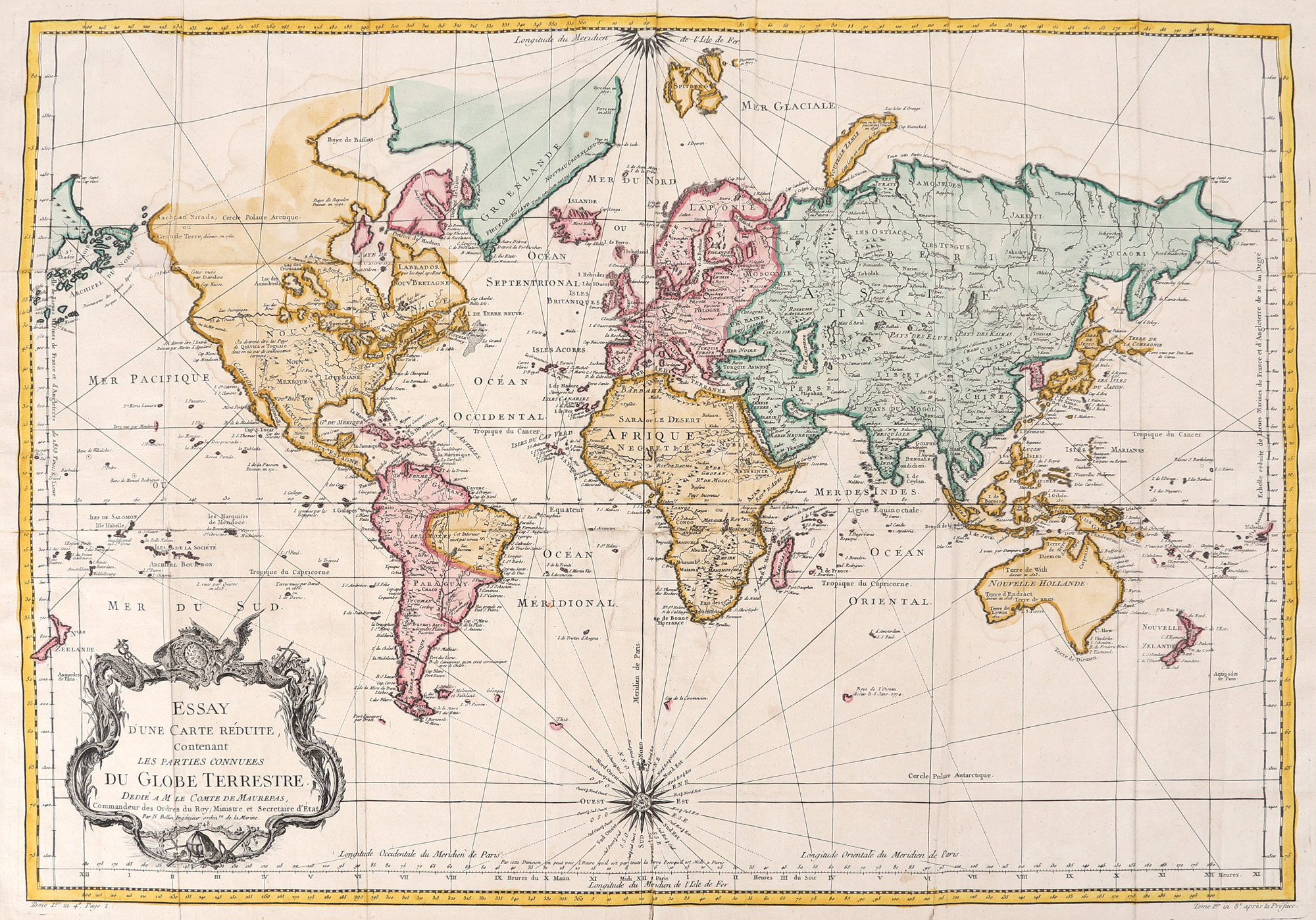 100. Harta lumii ”Părțile cunoscute ale globului”, de Jacques Nicolas Bellin, Paris, 1758, piesă rară