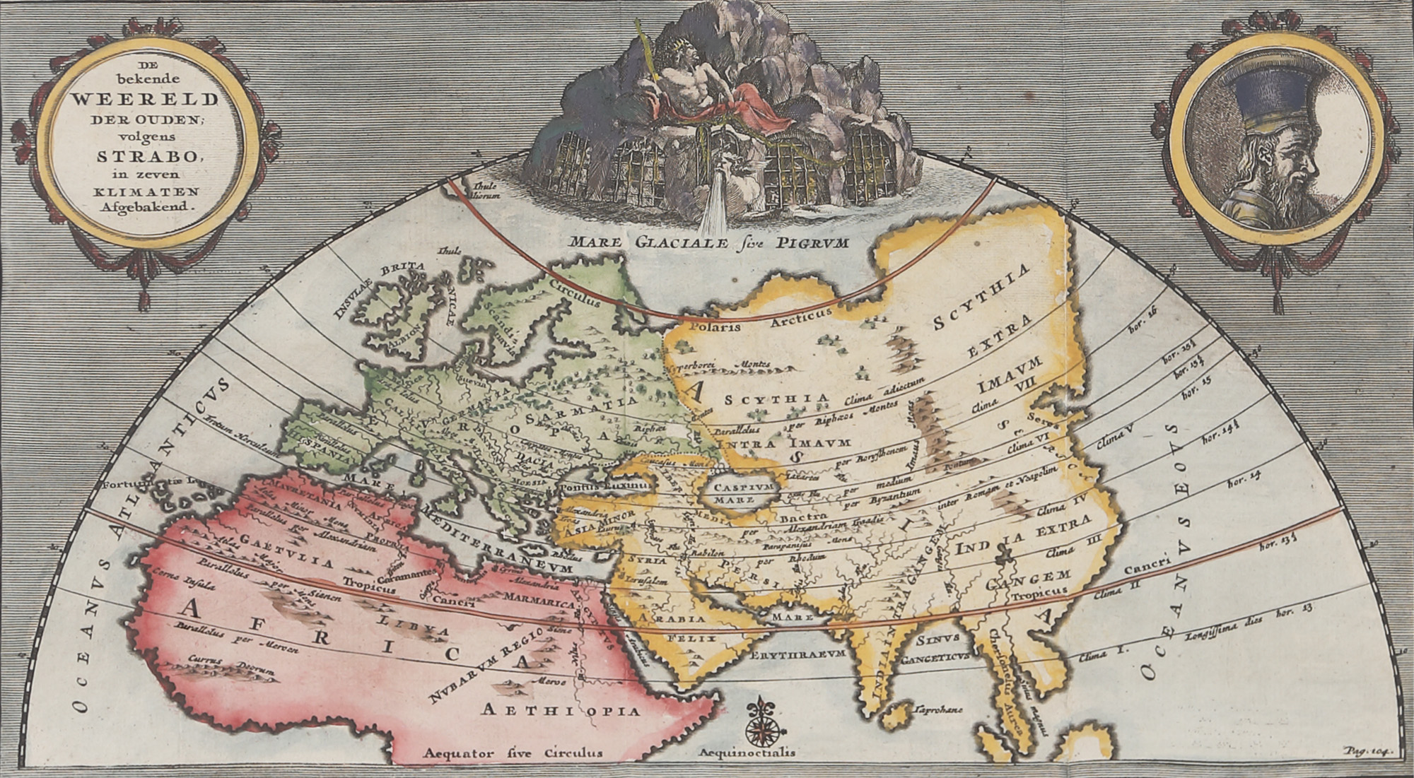 88. Harta lumii (planiglob), ”Lumea anticilor după Strabon”, de Wilhelm și Jan Goeree, Amsterdam, cca. 1700