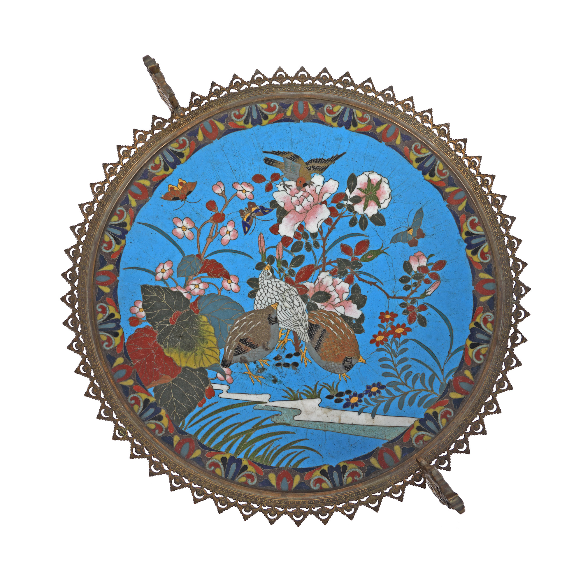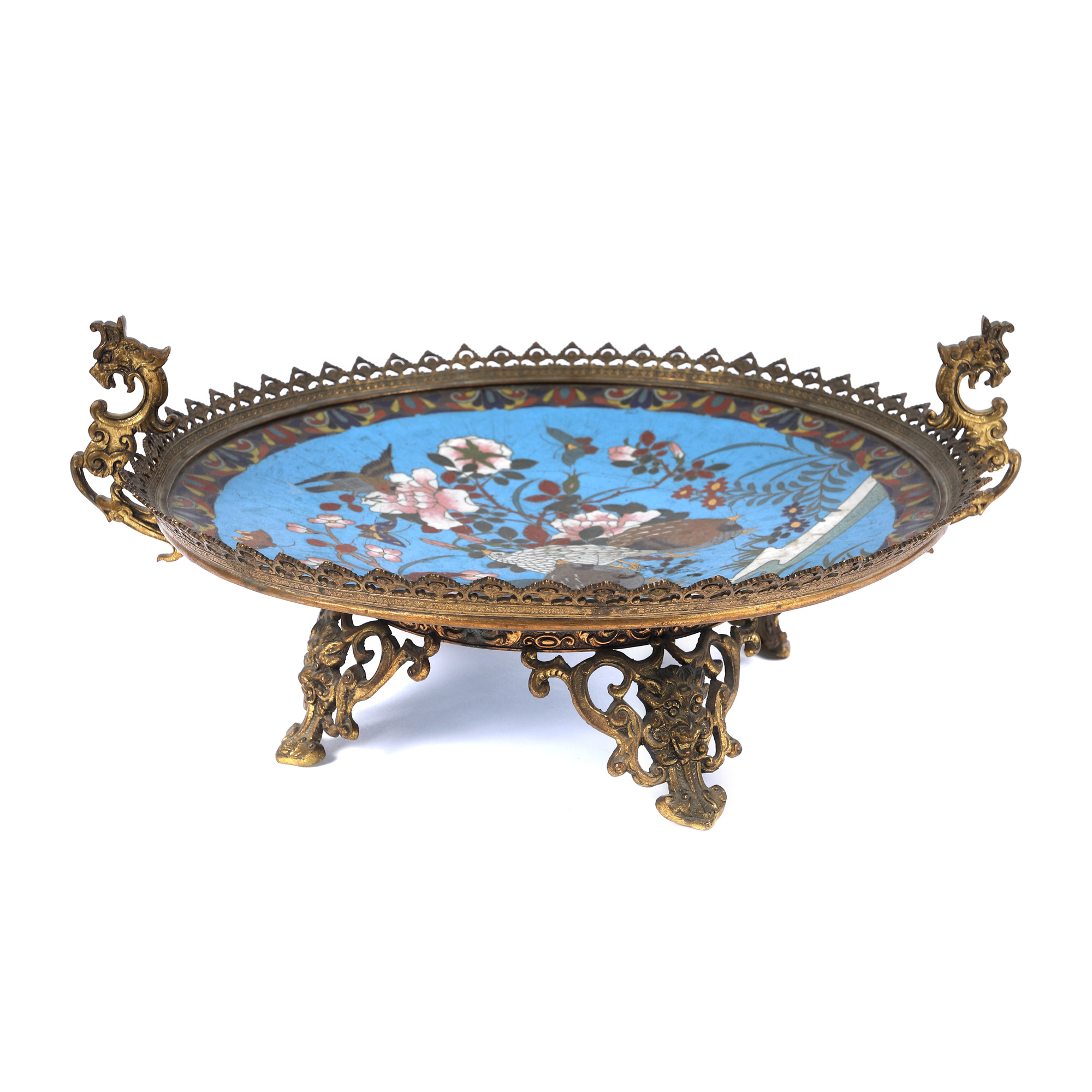 155. Lot format din două platouri din bronz, decorate în tehnica cloisonné, perioada Meiji, Japonia, sec. XIX