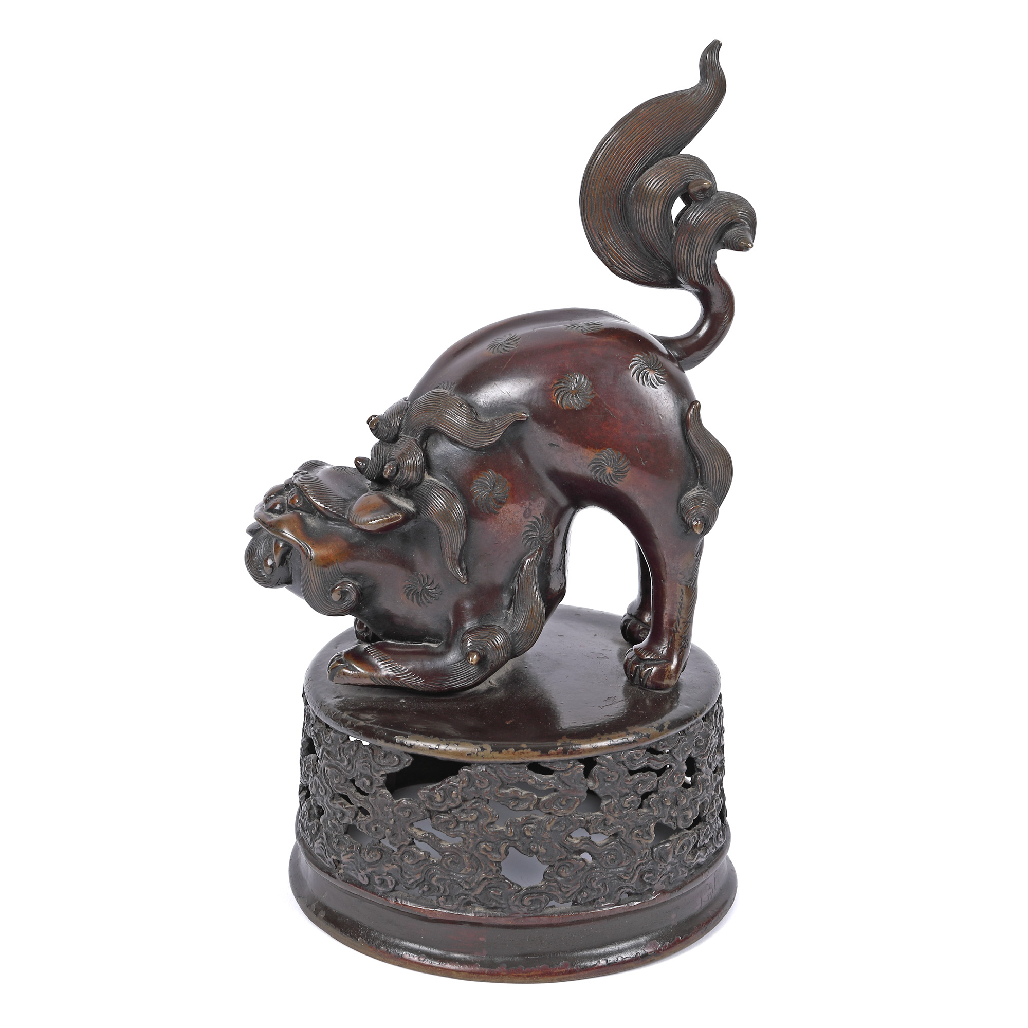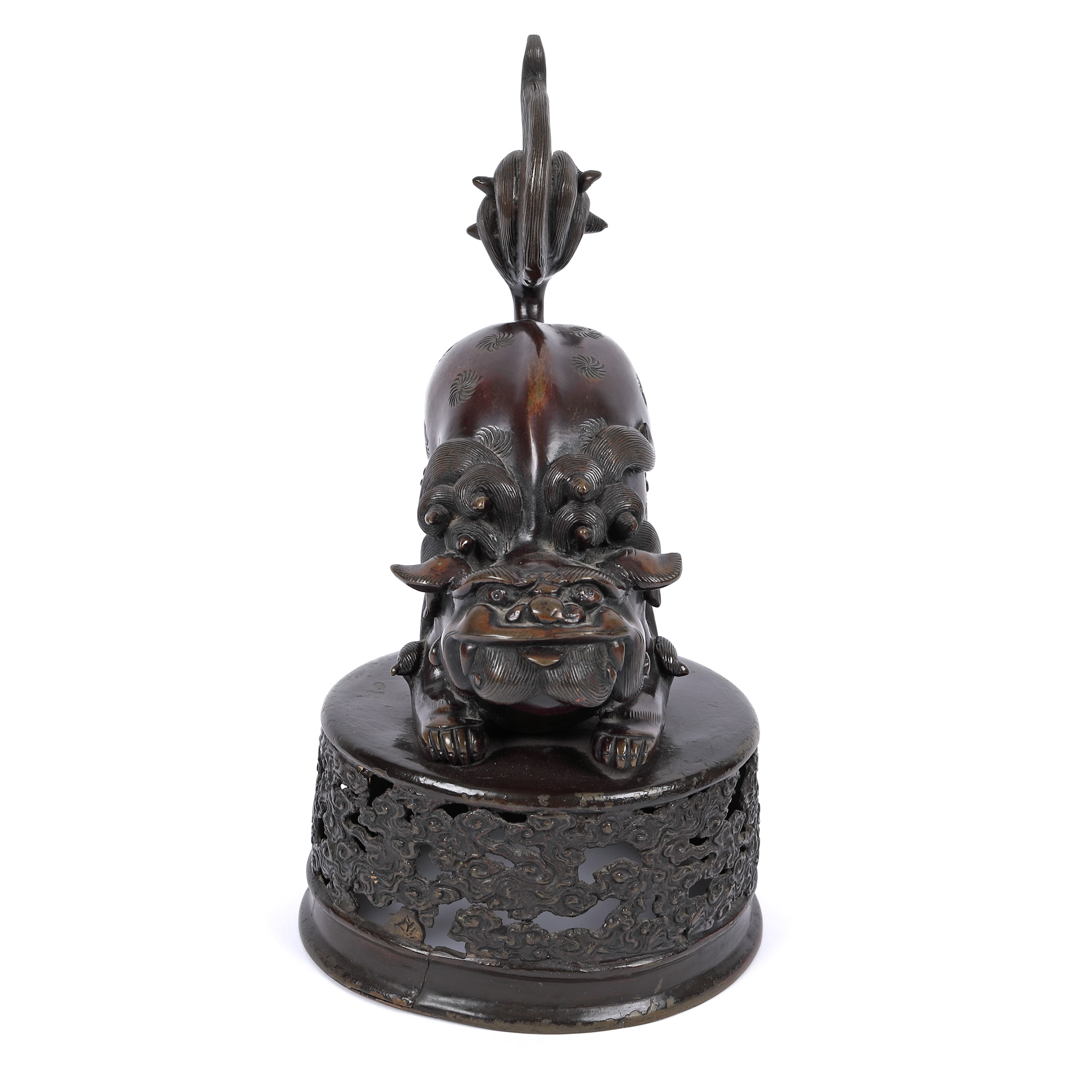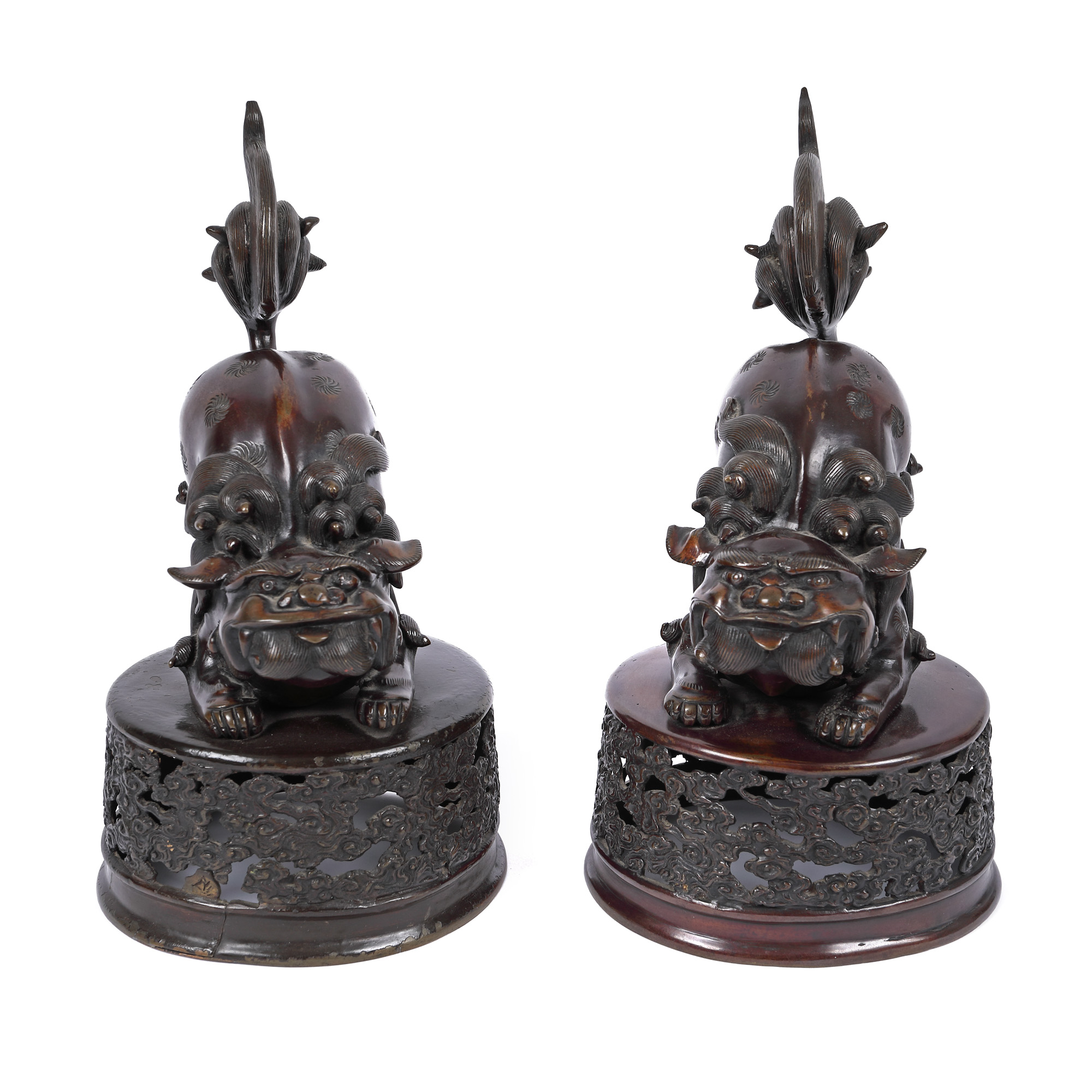 158. Lot format din două statuete din bronz, reprezentând doi câini Foo, perioada Meiji, Japonia, sec. XIX