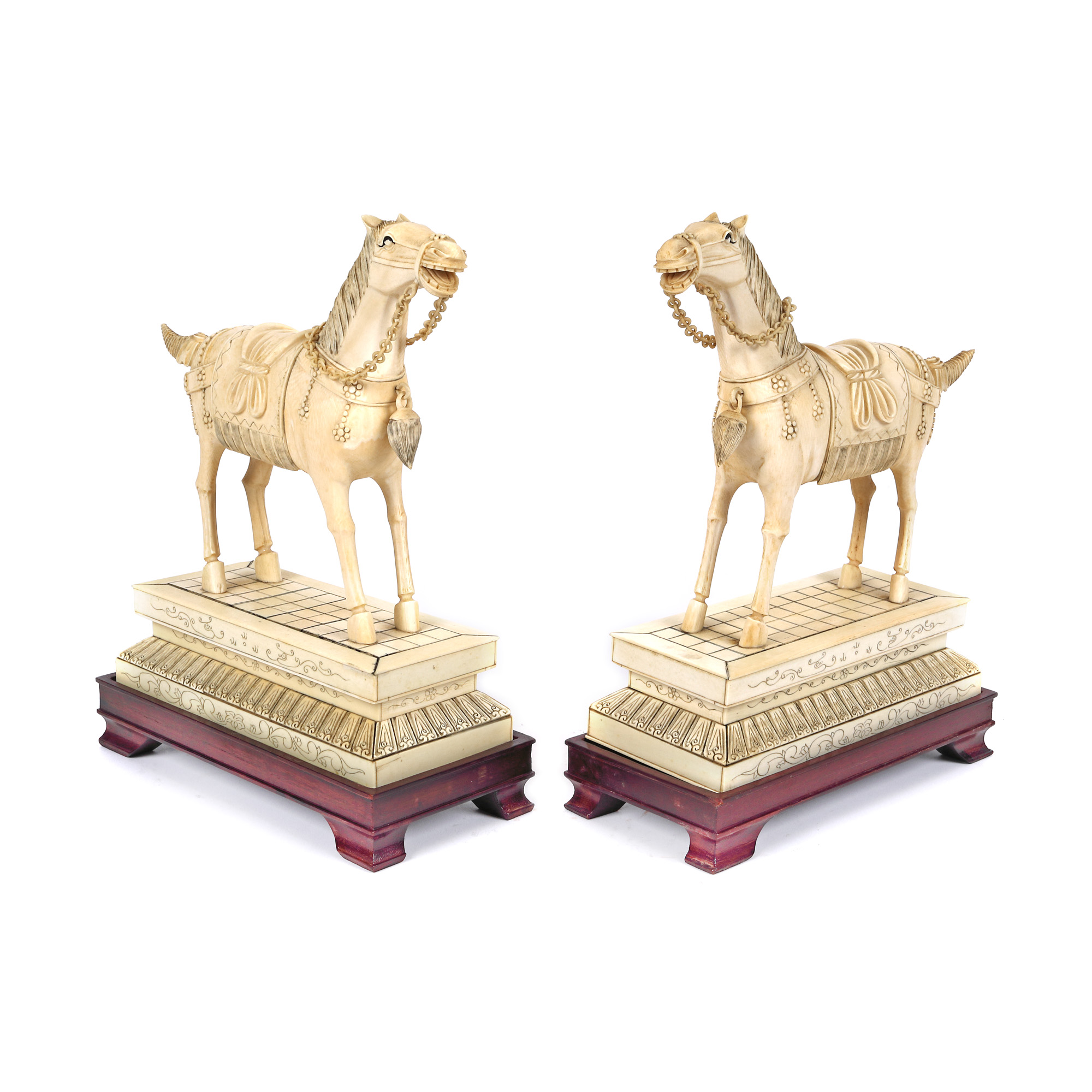 171. Lot format din două statuete din fildeș, reprezentând doi cai, perioada dinastiei Qing, China, sec. XIX