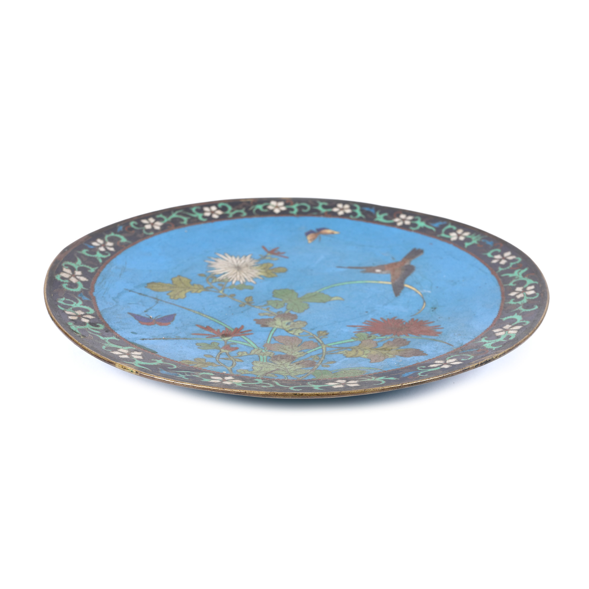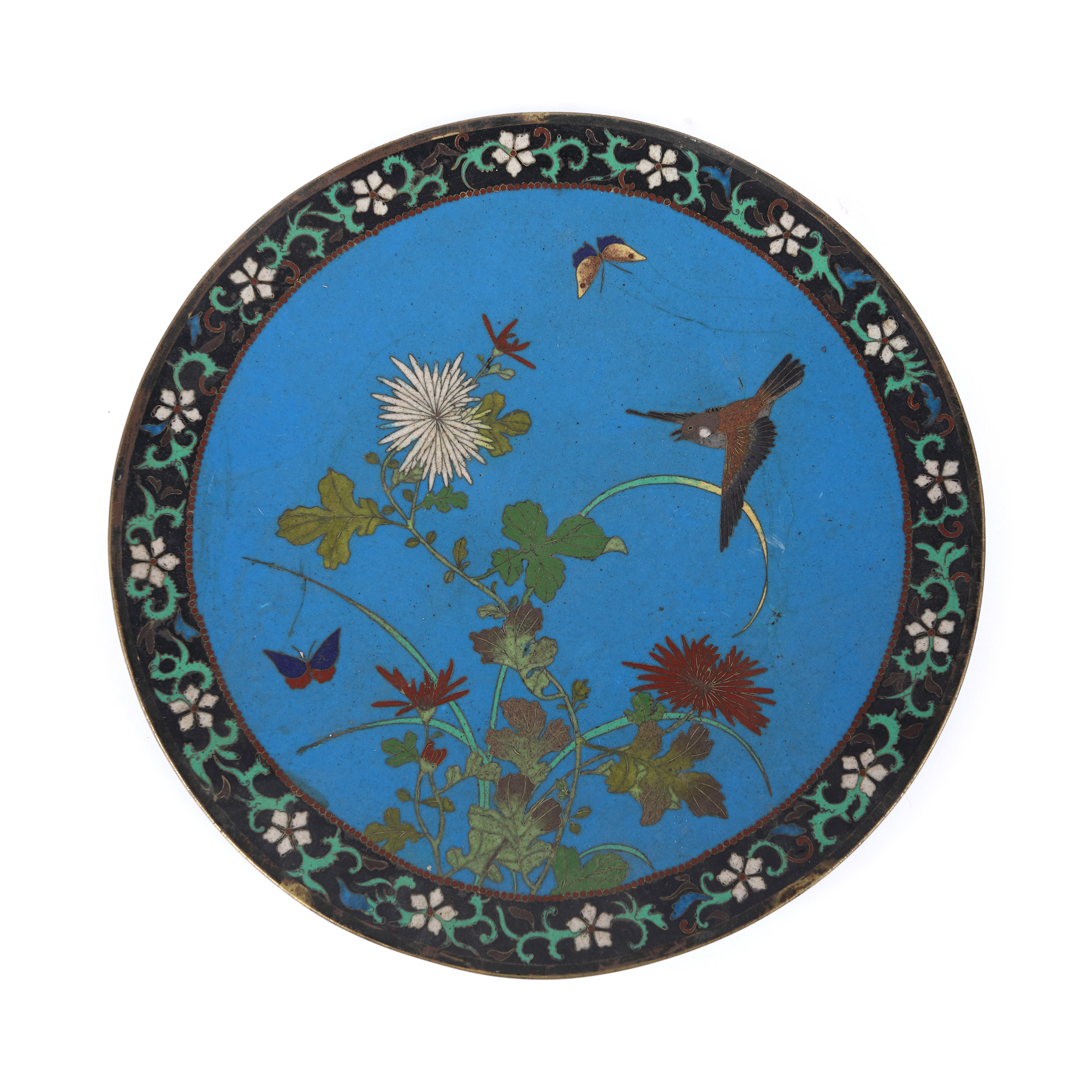 165. Platou din bronz, decorat în tehnica cloisonné, China, sec. XIX