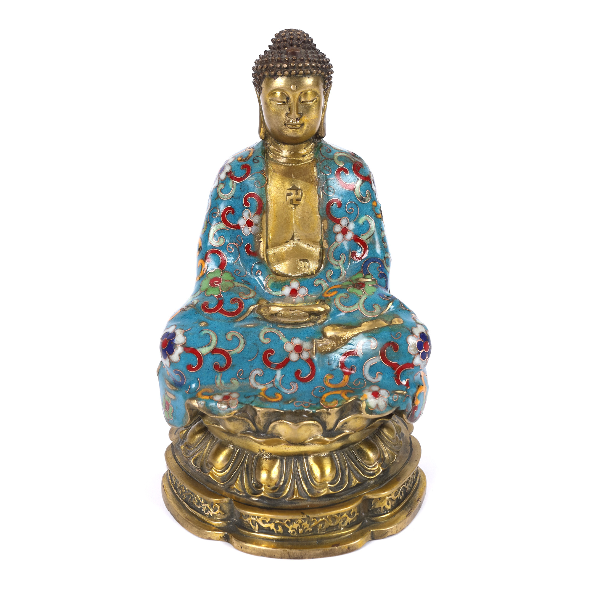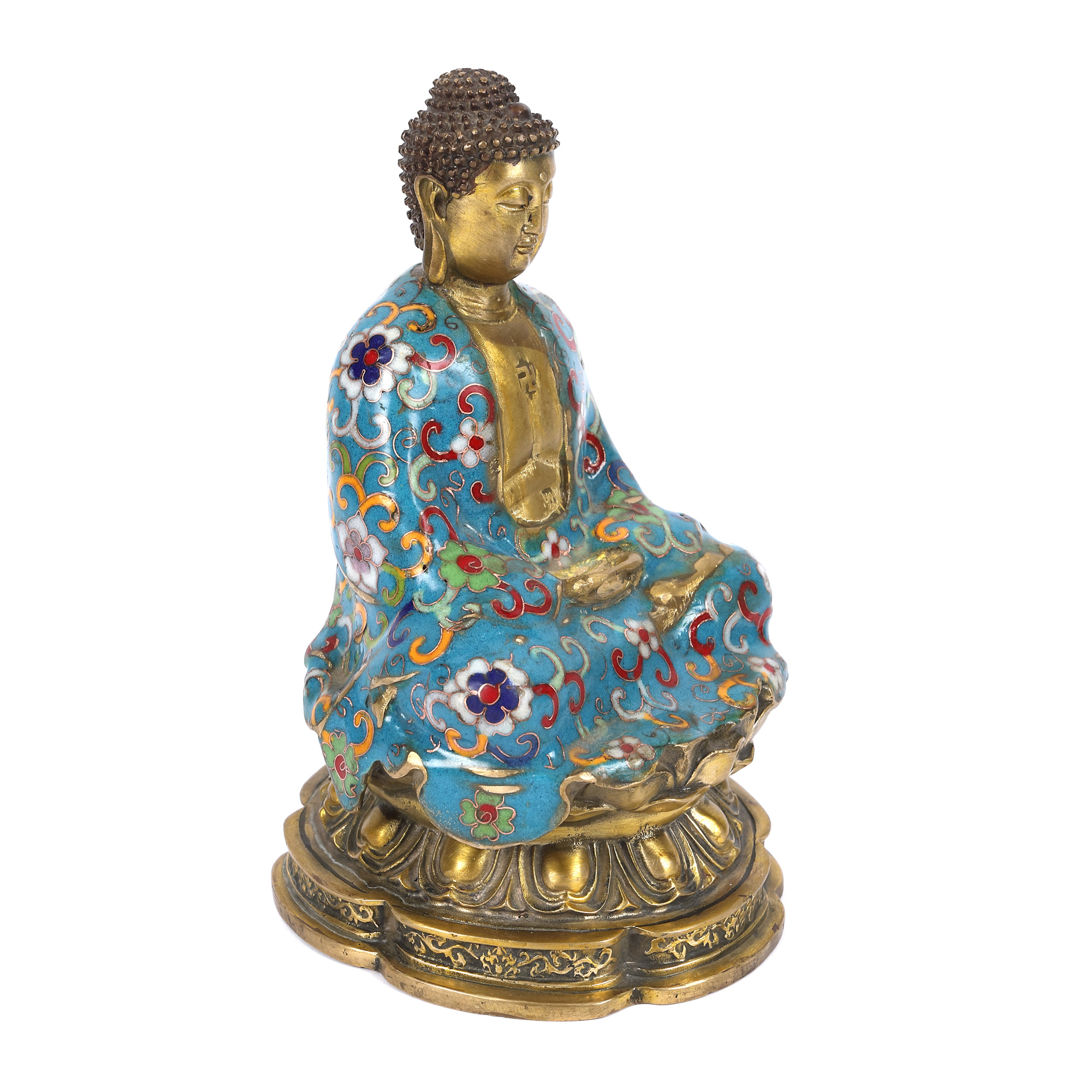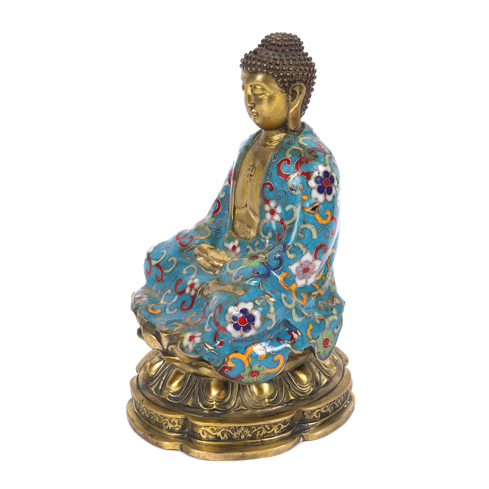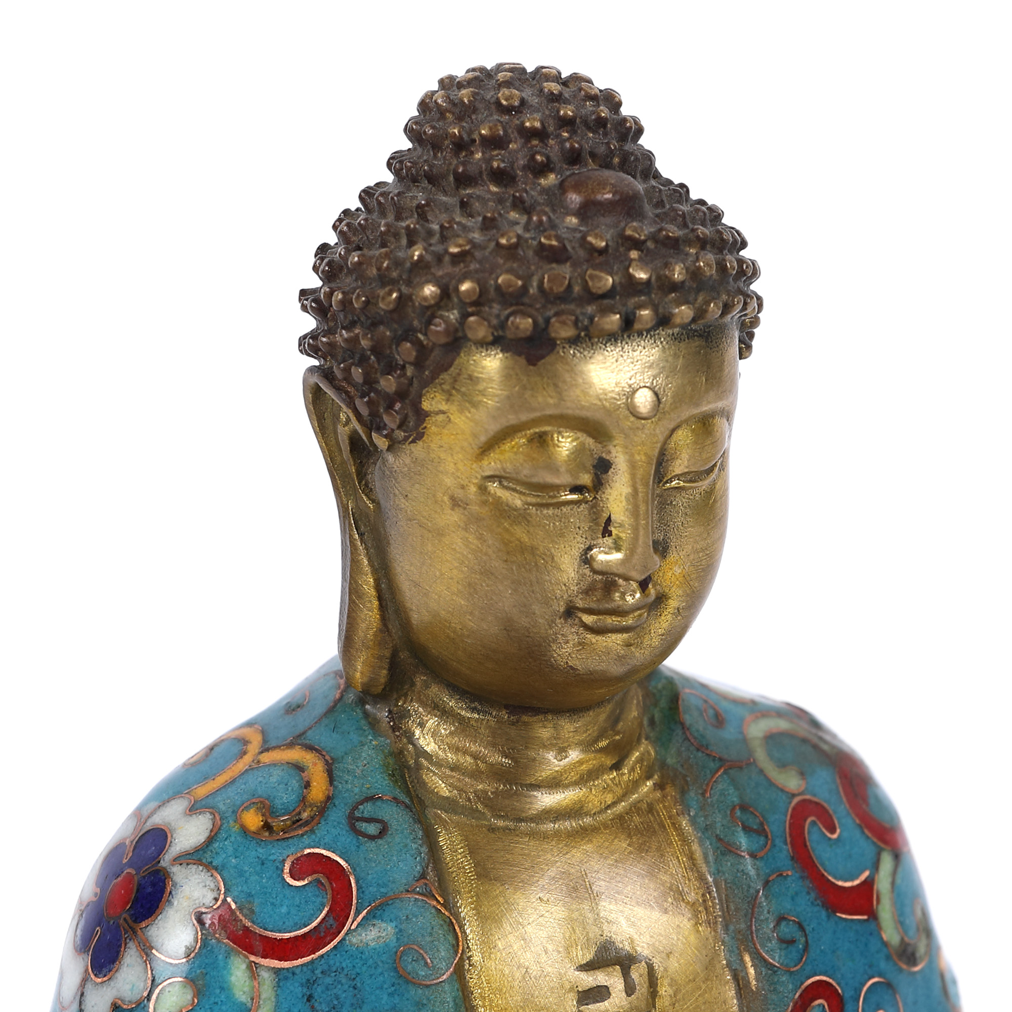 141. Statuetă din bronz, decorată în tehnica cloisonné, reprezentând un Buddha, perioada dinastiei Qing, China, sec. XIX
