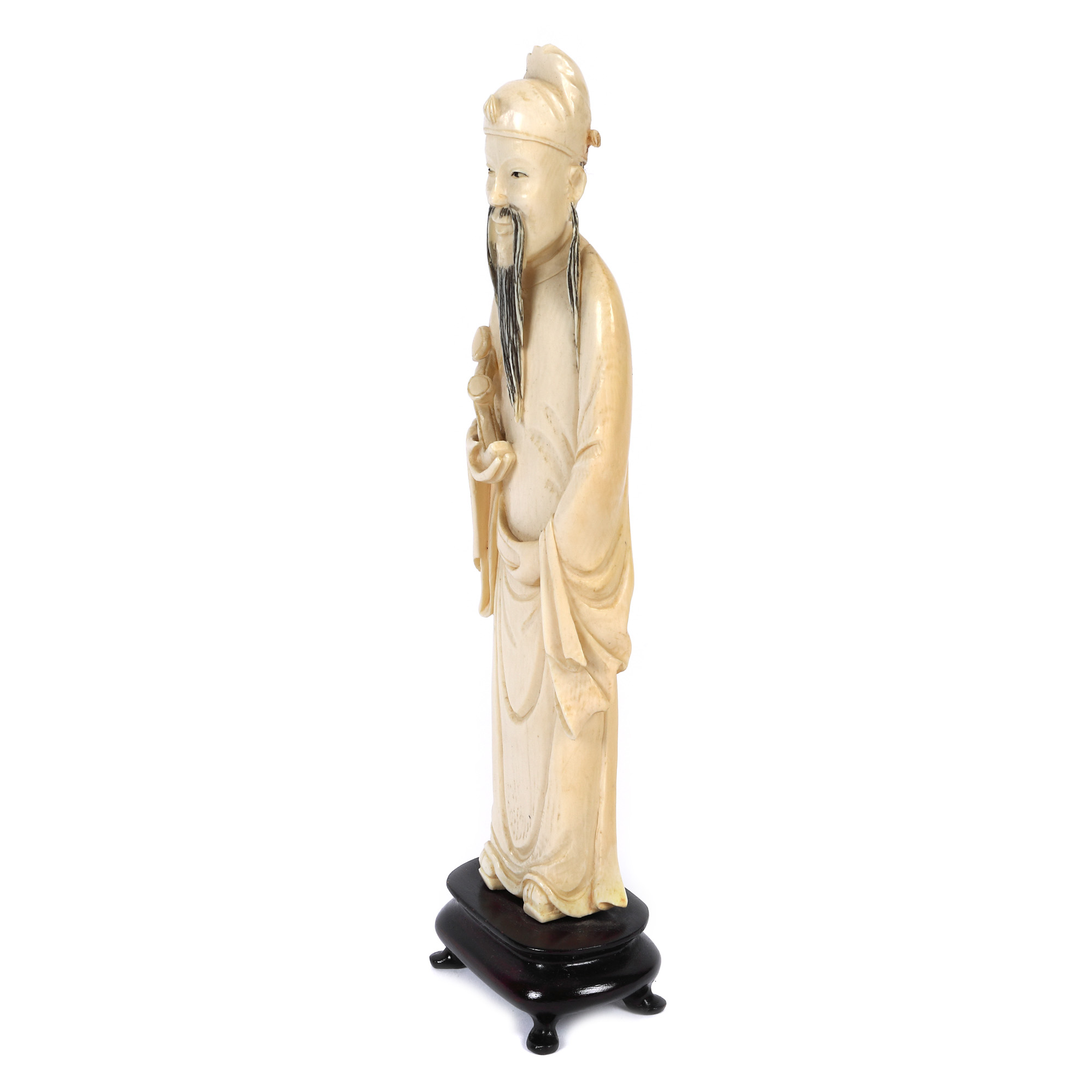 161. Statuetă din fildeș, ilustrând un cărturar, purtând sceptru ruyi, perioada dinastiei Qing, China, începutul sec. XX