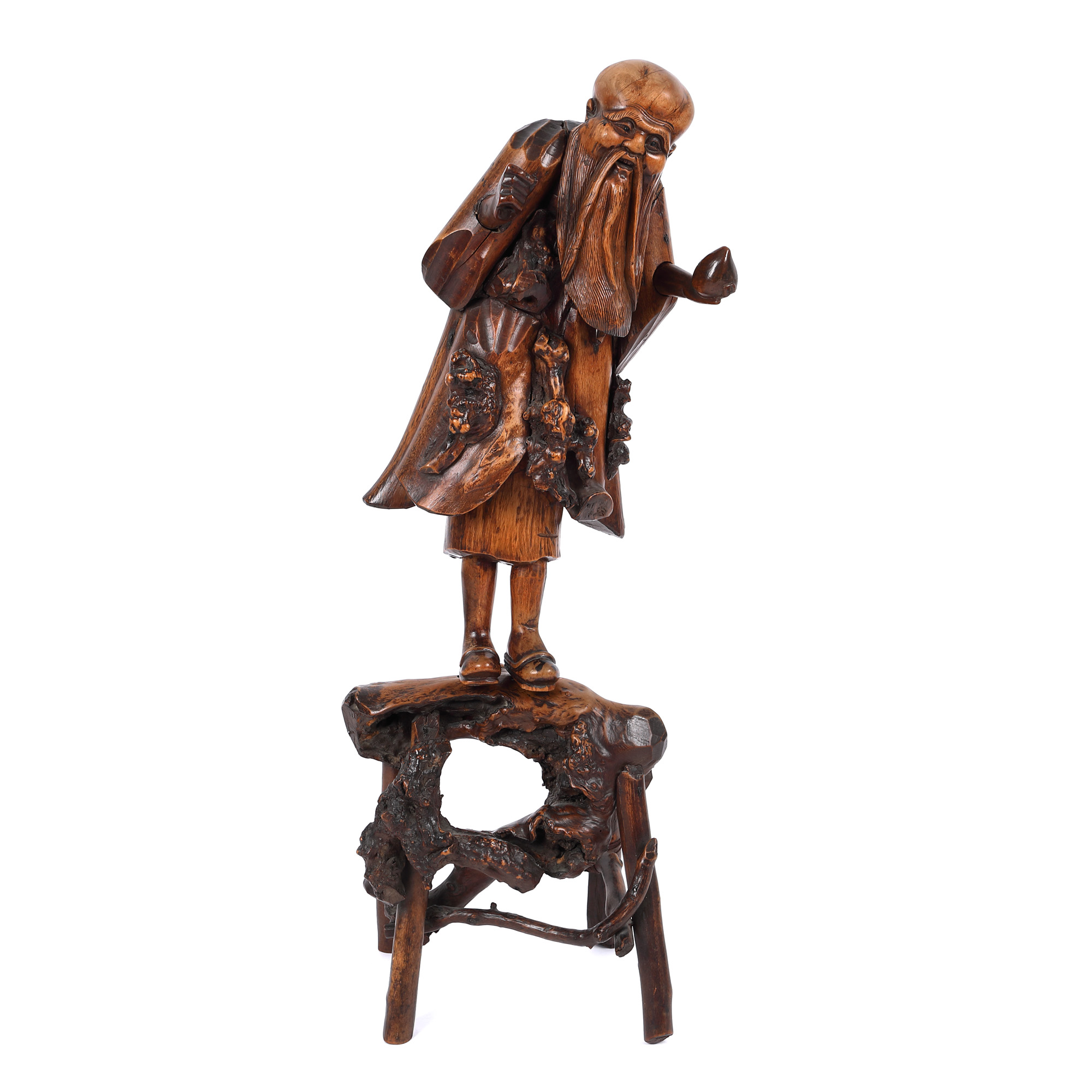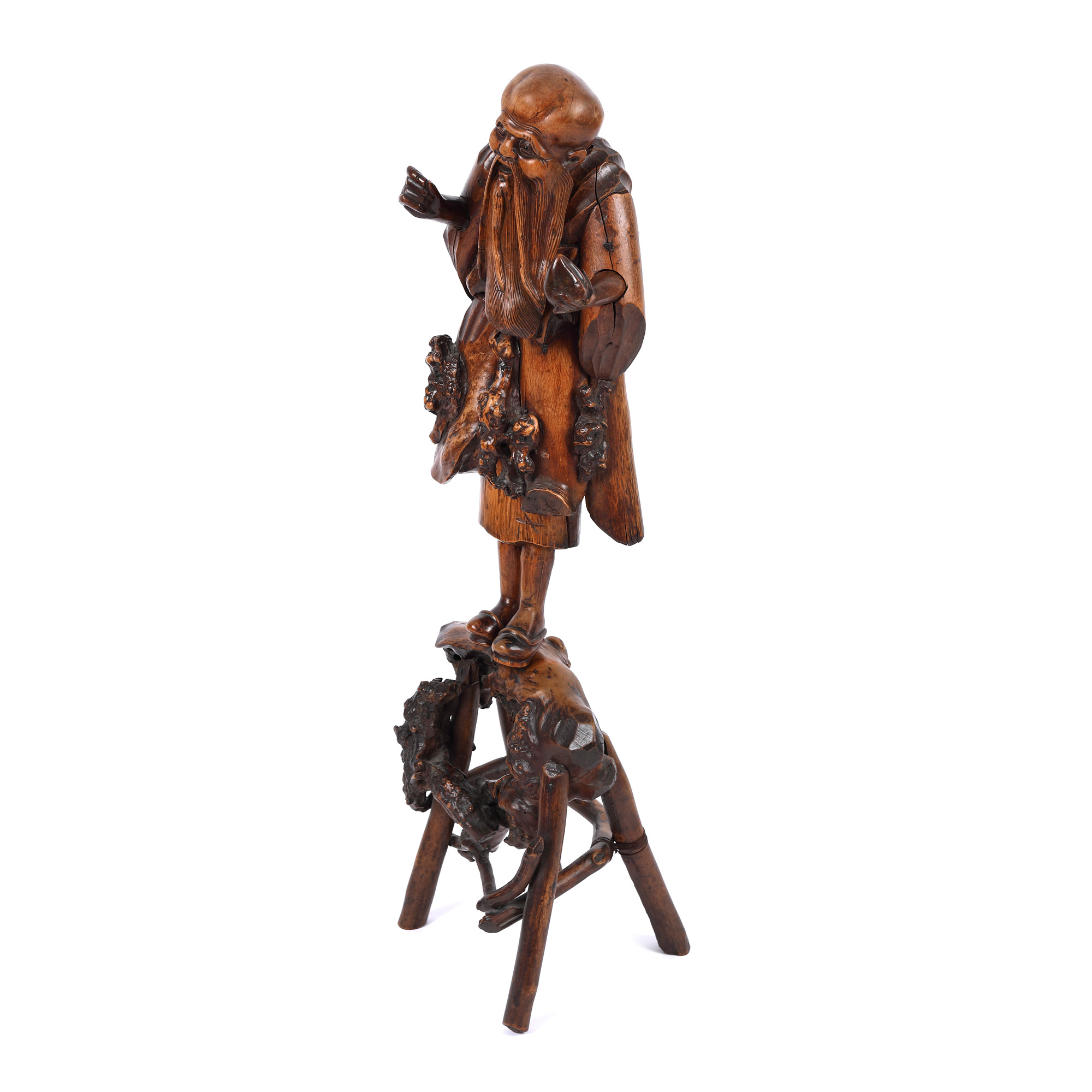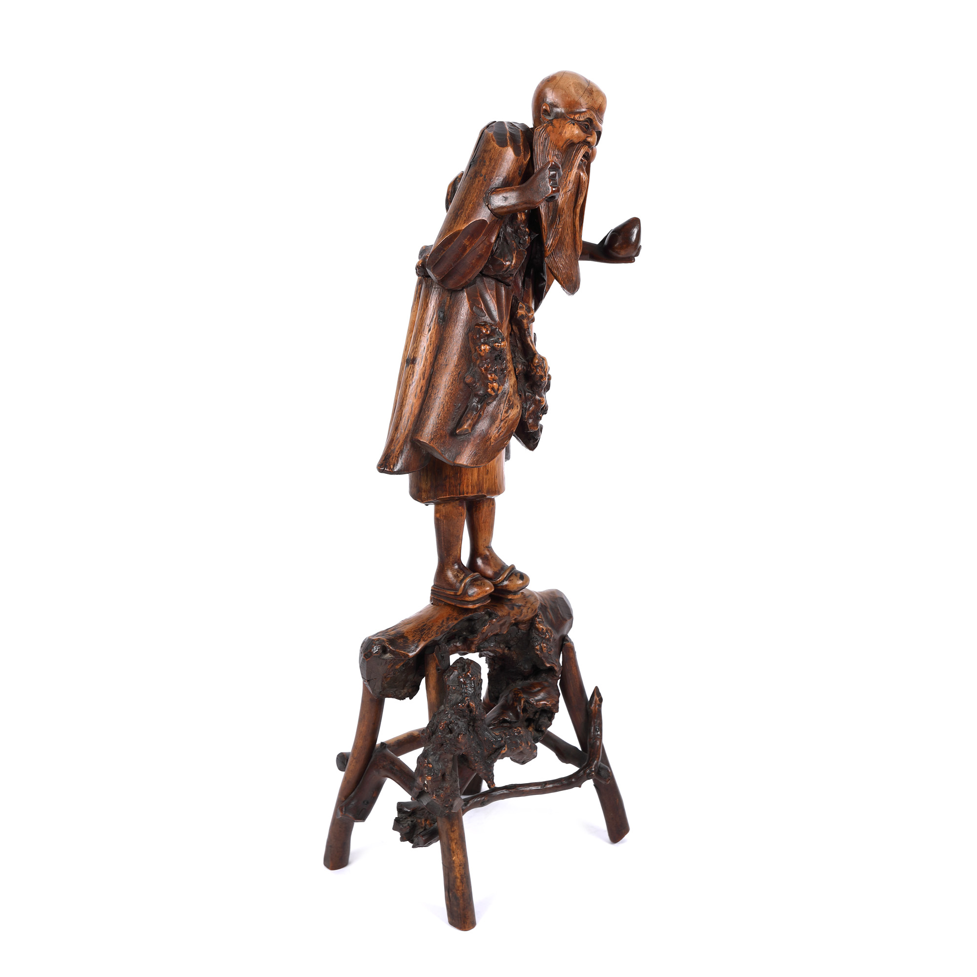 151. Statuetă din rădăcină de lemn, reprezentându-l pe ”Nemuritorul Li”, perioada dinastiei Qing, China, sec. XIX