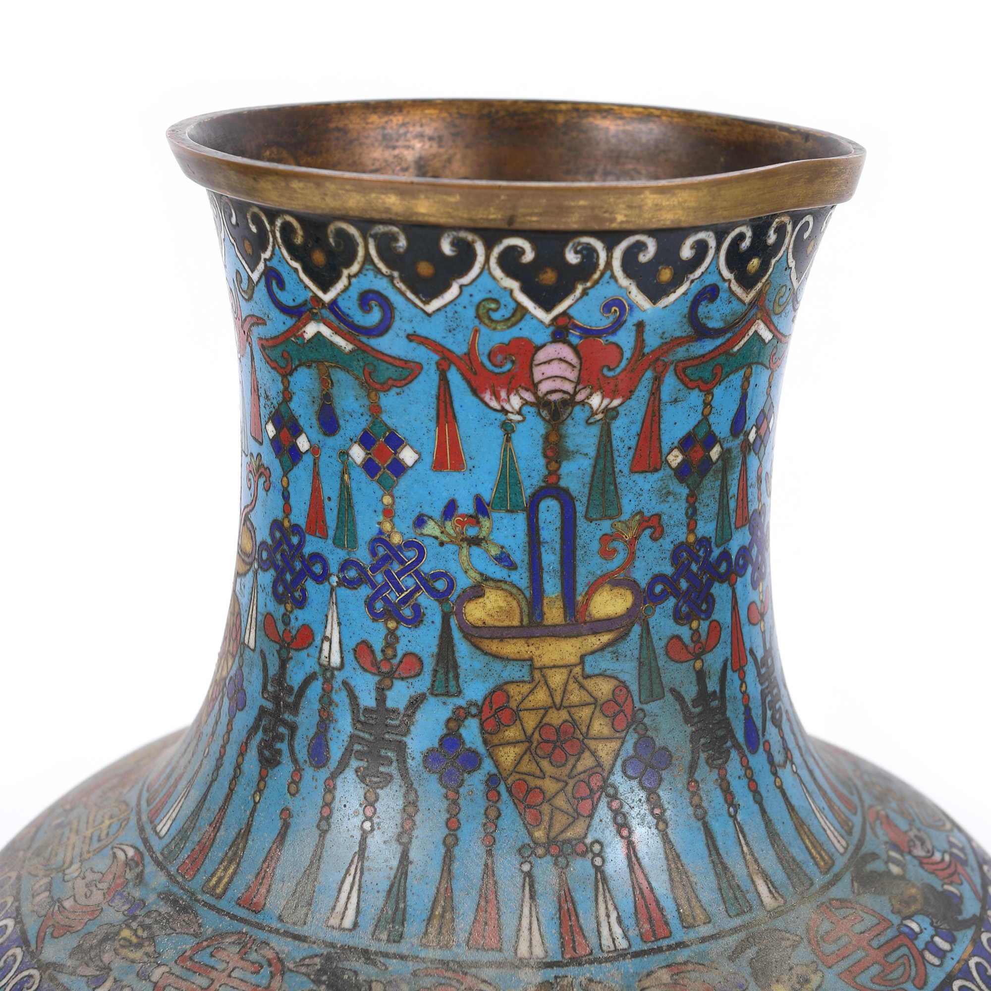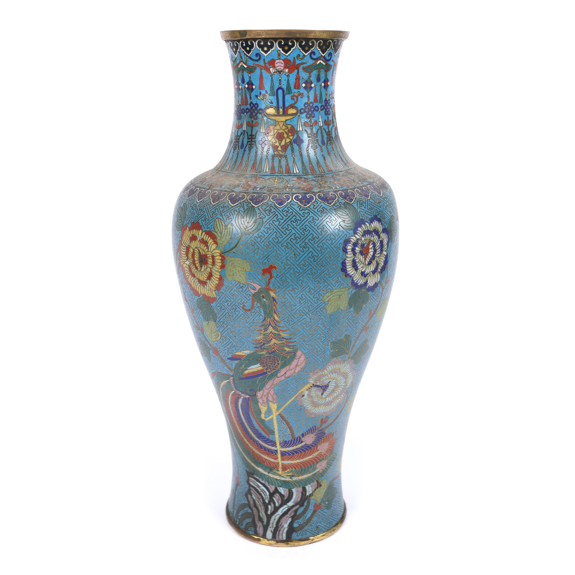 163. Vas din bronz, decorat cu phoenix și crizanteme, în tehnica cloisonné, China, sec. XIX