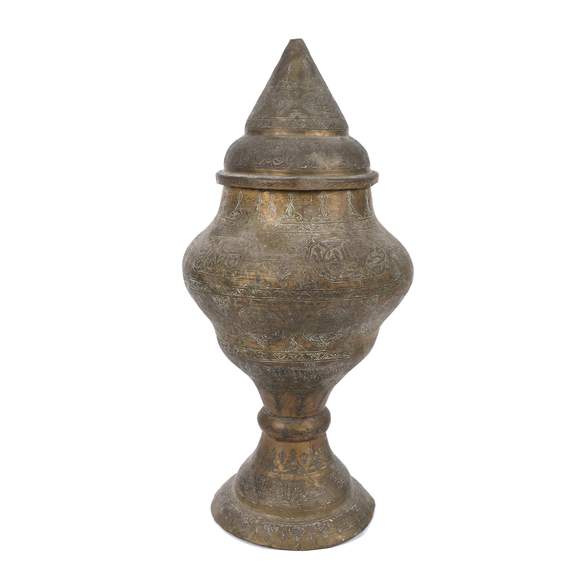 134. Vas Khmer pentru ars mirodenii, din alamă gravată, sfârșitul sec. XIX