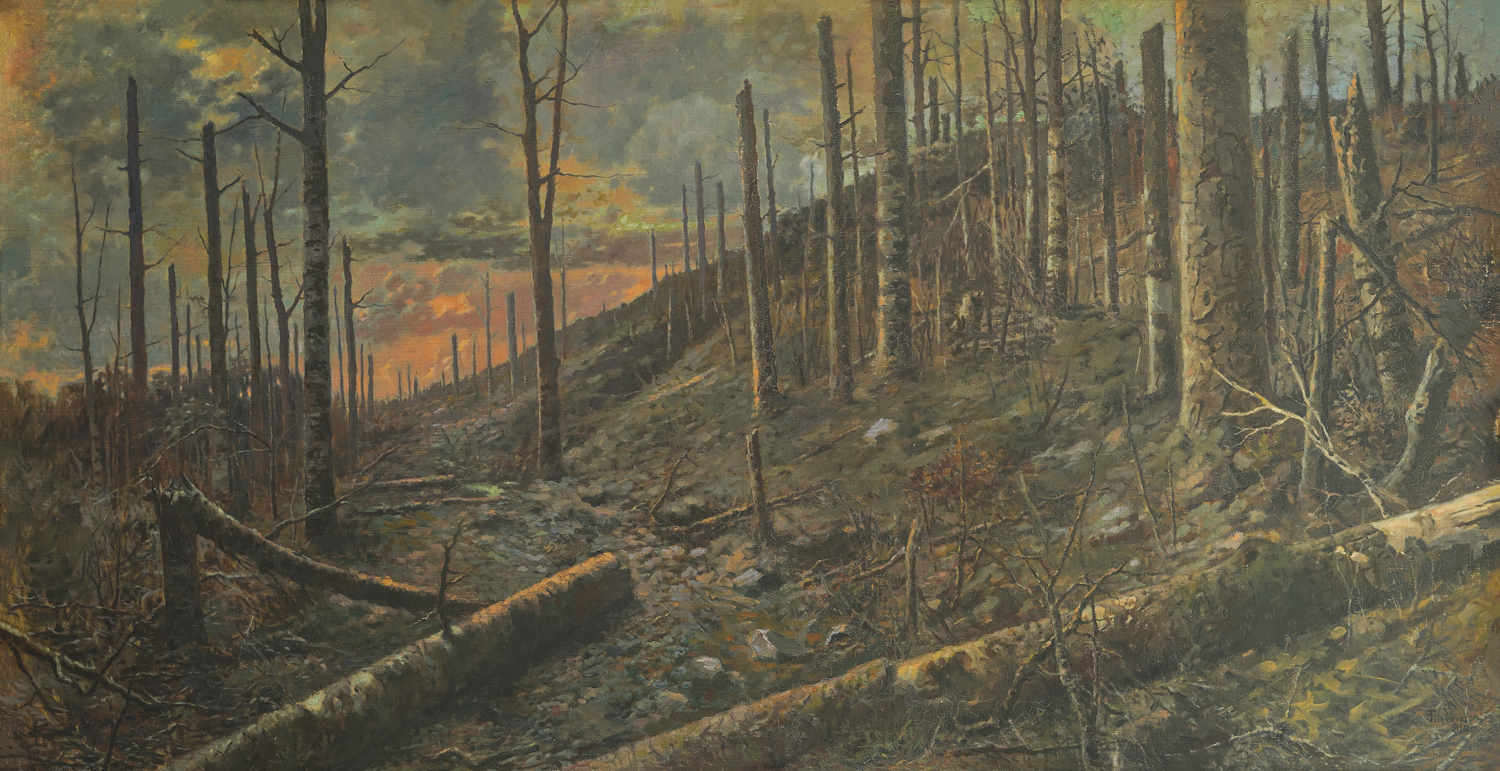 The work is reproduced in the monograph "Vladimir Filakovac", Jelica Ambruš, Art Gallery Osijek, Osijek, 2009., p. 19, cat. No. 19, under the title "Black Peak - Broken Beeches II". The work is mentioned in the online edition of the Croatian Biographical Lexicon (Filakovac, Vladimir. Croatian Biographical Lexicon, online edition, Lexicographical Institute Miroslav Krleža, 1983.–2025.)