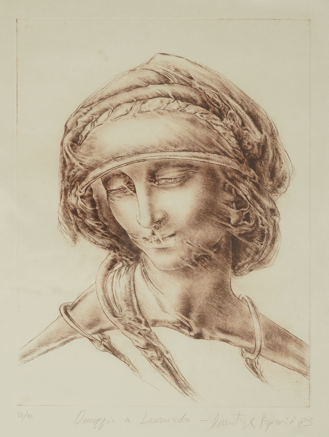 signed and dated bottom right, in pencil, "Dimitrije Popović (19)83"; titled at the bottom middle, in pencil, "Omaggio a Leonardo"; numbered bottom left, in pencil, "VII/XII"