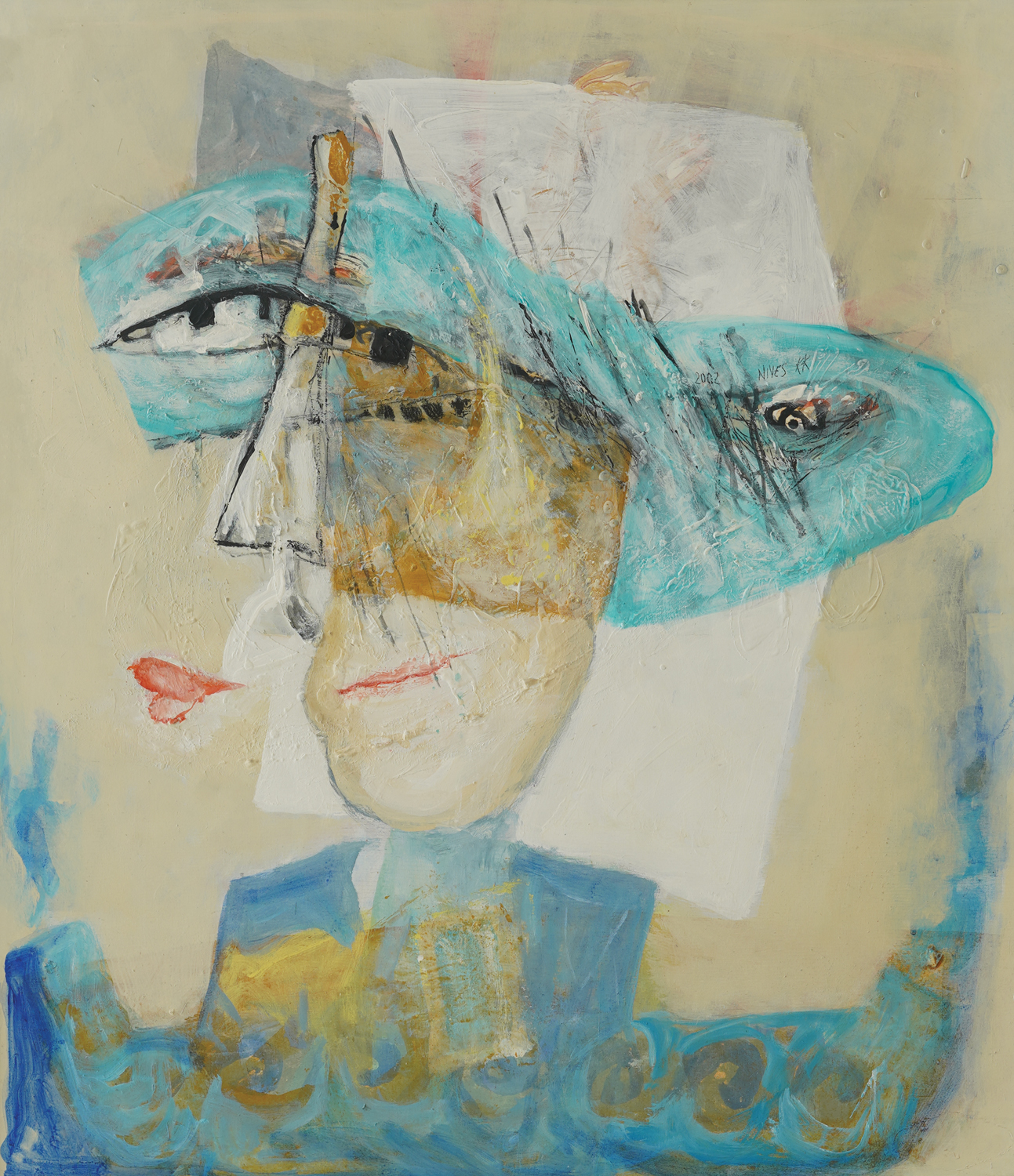 signed and dated top right, in black, "2002 NIVES KK"