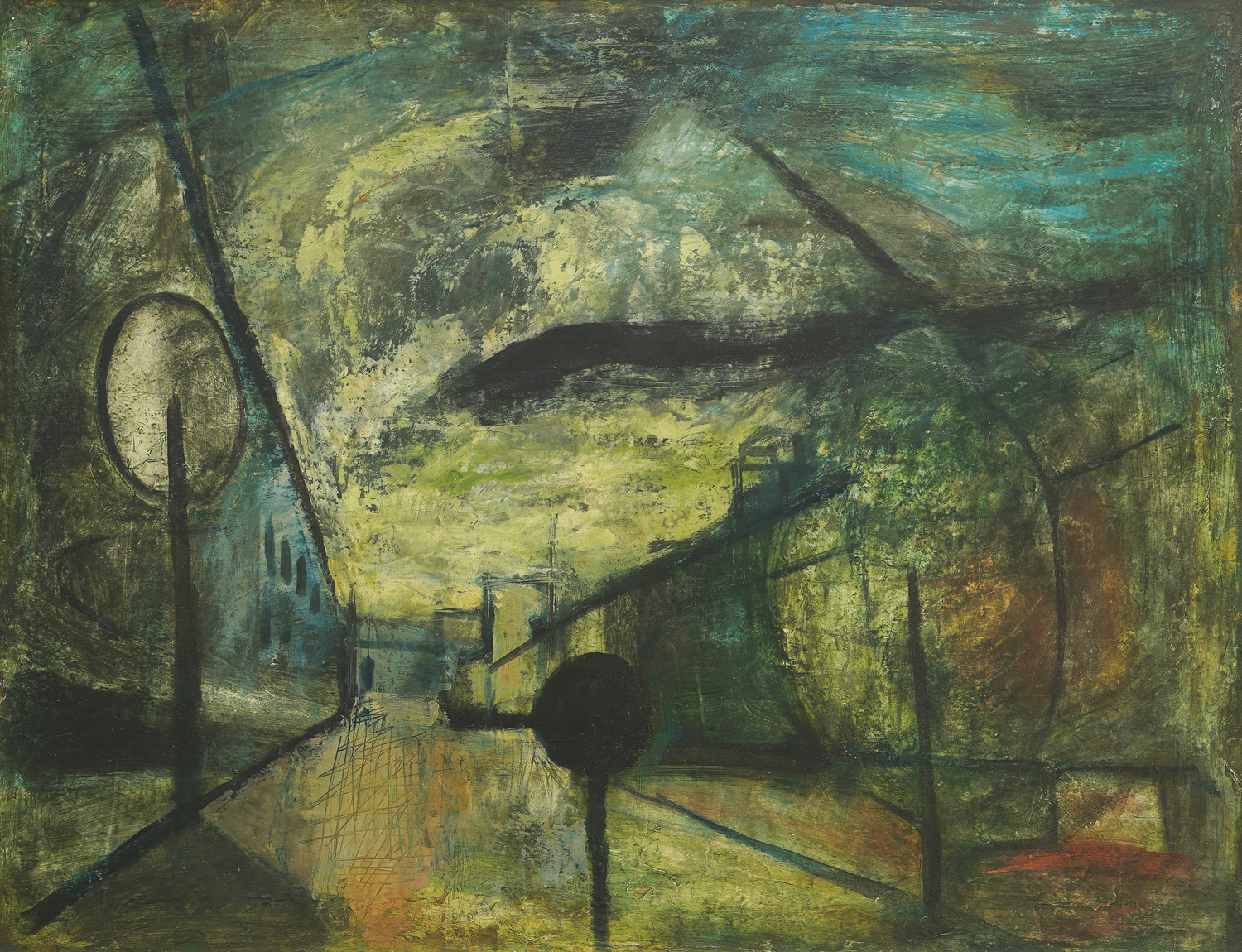 Ljubo Ivančić is one of the most pronounced representatives of urban, existential angst in Croatian painting. He began his painting career in the years following the Second World War, when existentialist worldviews, questioning the possibilities of human action in the world, were gaining more and more momentum on the intellectual scene of Europe. In painting, the echo of these thoughts was informal - a style that emphasizes matter, color, stroke, without the desire to mimic the real world or to construct an aesthetically classical and rational world within the image. Ljubo Ivančić (born in Split in 1925), graduated in painting from the Zagreb Academy of Fine Arts in 1949. Throughout his creative work, the motifs he paints will be related to the contemplation of human existence - he depicted rainy streets, lonely figures, still lifes filled with the anxiety of life, a painter in the studio and broken acts, all in a very rich matter that gives the images an expressive charge. He died in Zagreb in 2003. This painting depicts one of Ivančić's frequent motifs - rain on the street. Through the dark base, a greenish and blue underpainting breaks out, reminding us of Ivančić's slightly later, completely abstract works in which he portrays impressions of atmospheric phenomena (such as the painting Sky and Earth, from 1959, in the Art Gallery Dubrovnik). However, the scene here is completely readable. The street is precisely, geometrically articulated with straight lines suggesting an emphasized perspective construction of space. Regular on the painting are ovals (cypress trees, very common with this painter) and a small black circle, which, in comparison with numerous other Ivančić's rain scenes, we can read as a figure with an umbrella, viewed from behind. In this regular stylization of the world, colors and traces of paint, which create an ambiance of a rainy day, provide a counterbalance to the entire composition. It seems that the natural element of rain and the impression it gives to things is stronger than all human, rational attempts to give meaning to space. Such, material or expressive, slips out of the form that represents part of reality or a human figure, are characteristic for the opus of Ljubo Ivančić. One could even say, that throughout his entire opus he depicted a constant tension between individual human consciousness, which gives meaning to reality but distorts it at the same time, and the world in which this consciousness survives. FG
