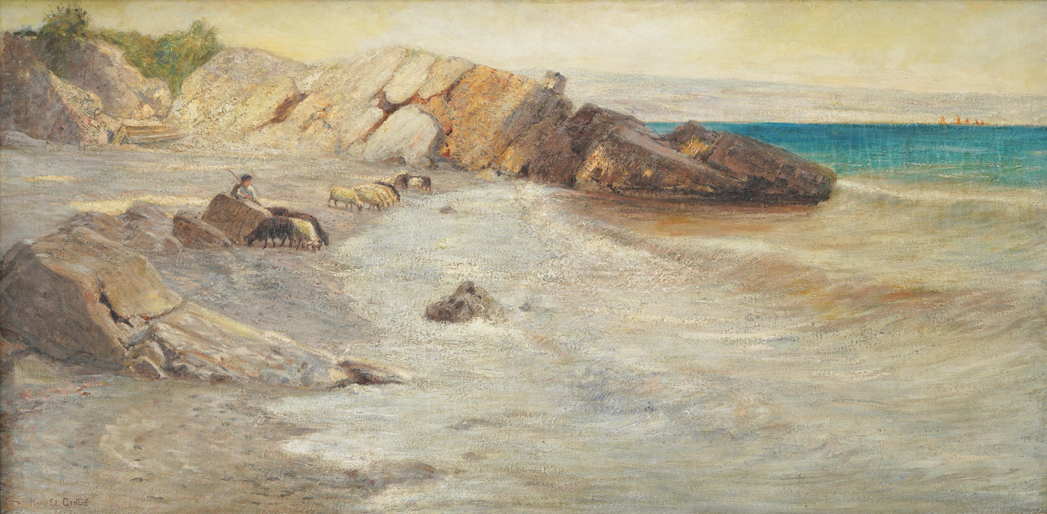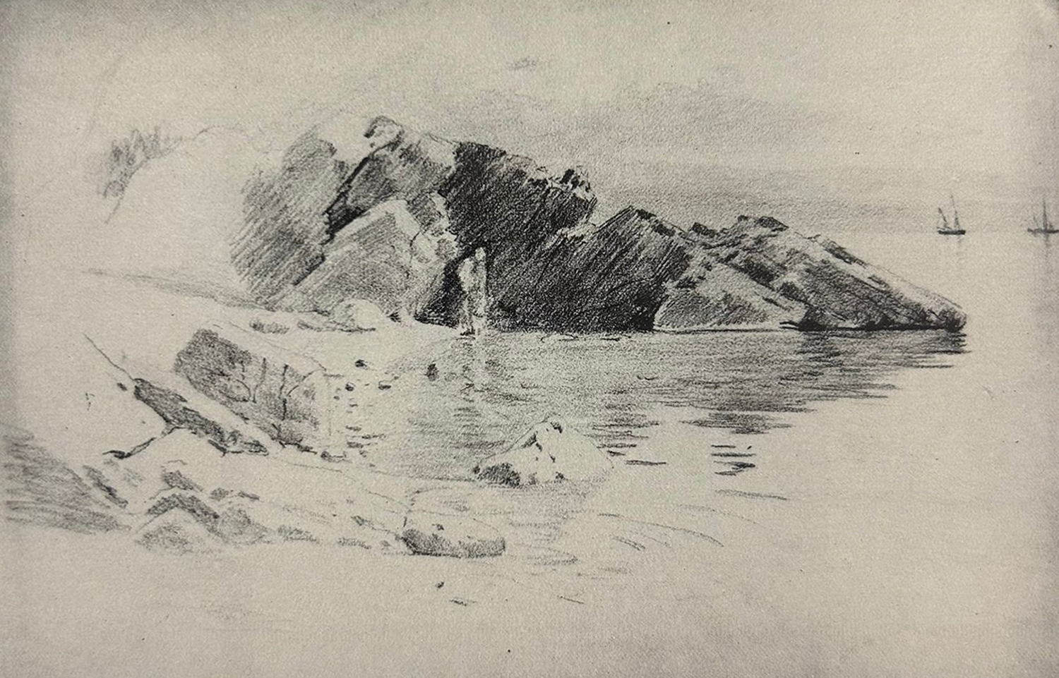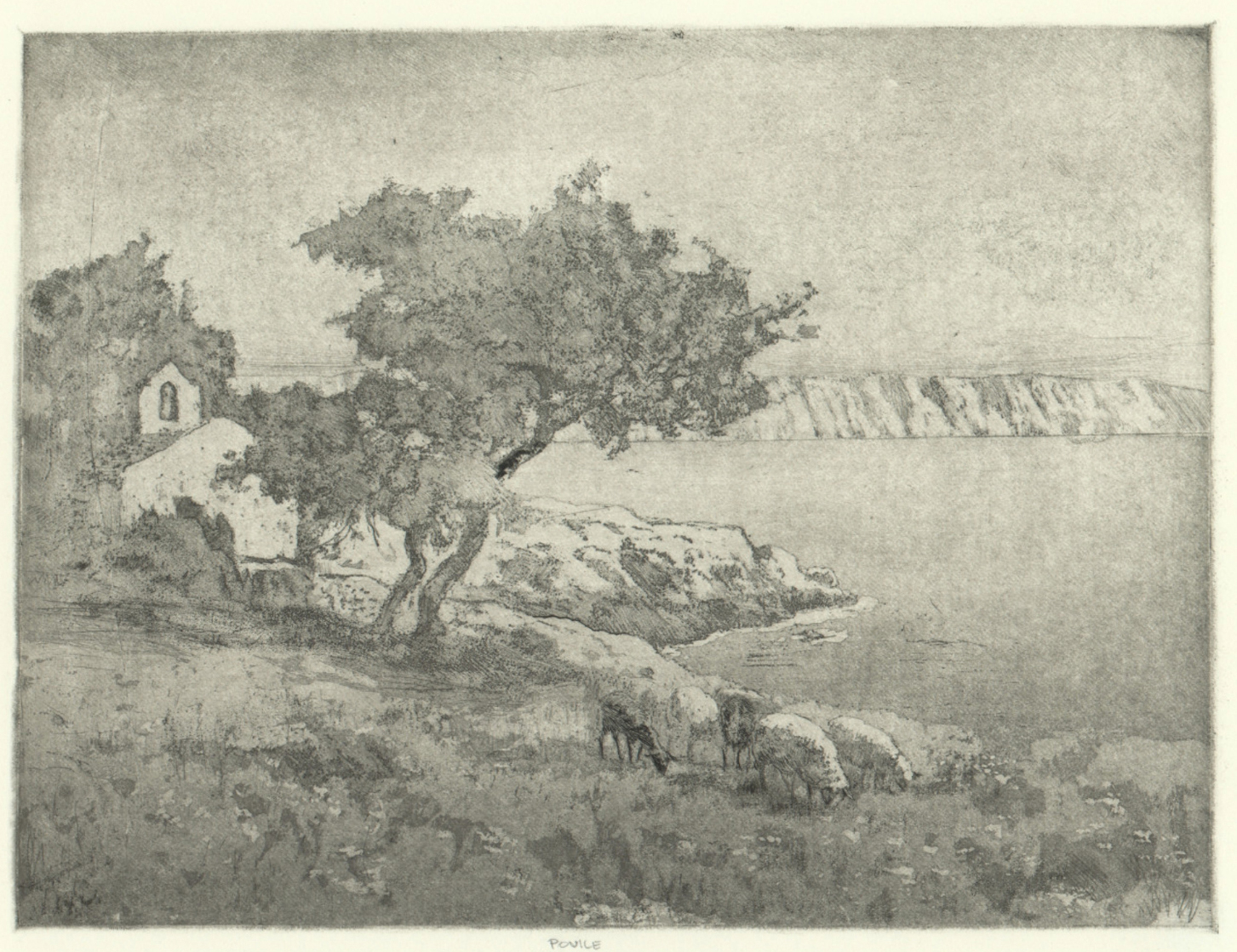 Menci Clement Crnčić was a painter, educator, and one of the founders of modern Croatian graphics. He studied painting in Vienna and Munich, and perfected his skills in graphics in Vienna with William Unger. He was a co-founder and the first professor of the Graphics Department at the Academy of Fine Arts in Zagreb. He is recognized for his landscapes, especially marine motifs, in which he combines a realistic sensitivity to atmosphere with a lyrical mood. His body of work occupies an important place in the development of modern Croatian landscape painting and graphics. He was extremely active in the early years of the 20th century, organizing and participating in numerous exhibitions, opening a famous private painting school with B. Čikoš Sesija and producing a large number of works with motifs of Dalmatia and the Croatian Coast. Crnčić's scenes are based on realistic observation of nature, but are characterized by a warm palette and a strong sense of light and atmosphere. He created his most famous works with coastal and Adriatic themes during this period, which exhibit lyrical tones and a refined coloristic sensitivity, placing him among the most prominent representatives of modern Croatian landscape painting. The motif from the offered oil is also found in the graphics of that time, and a study for the work from 1899, titled "Coast", is reproduced in the catalog.