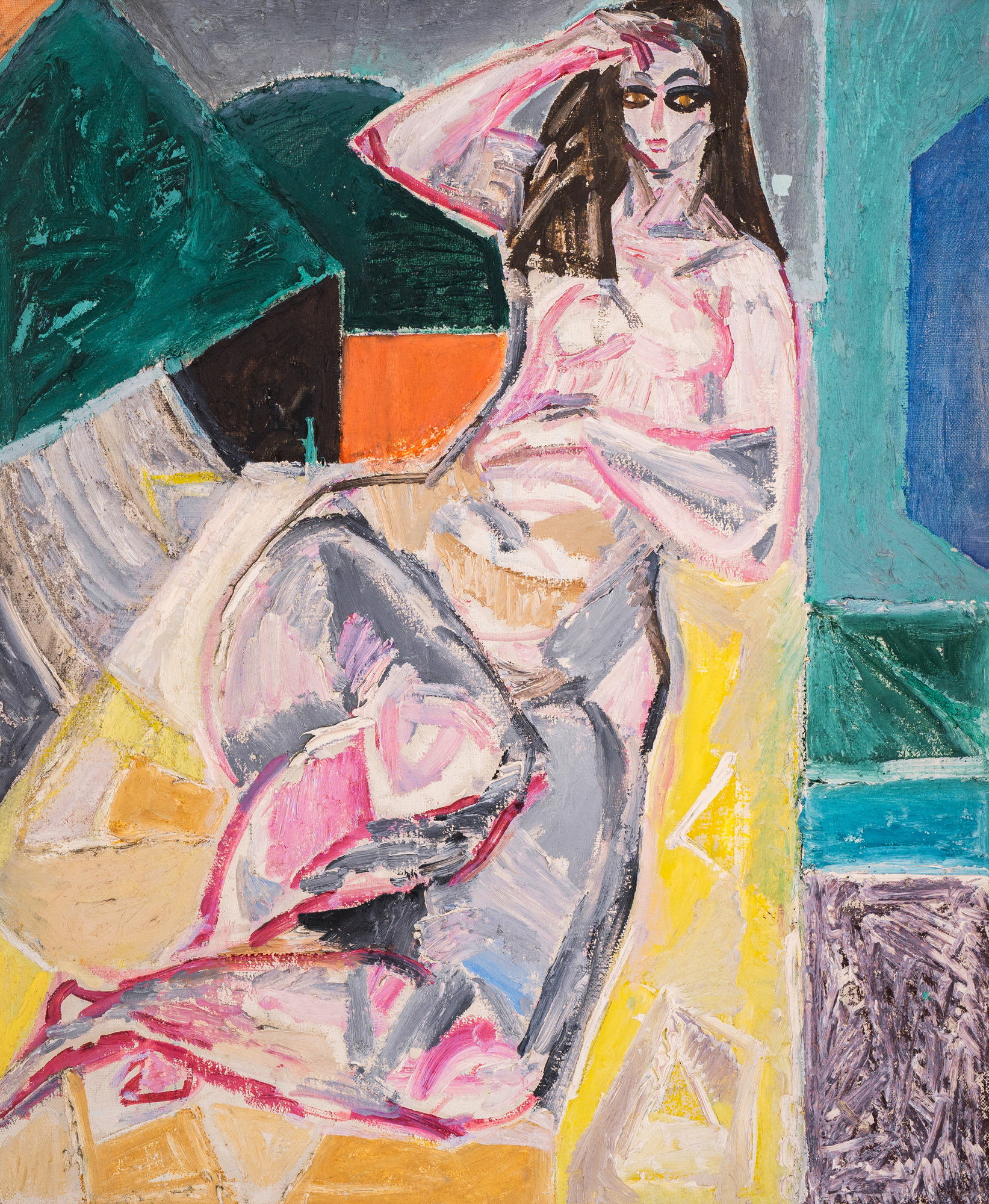signed, dated and titled on the back, in pencil, "Атанас, 1967 г., Легнала жена"